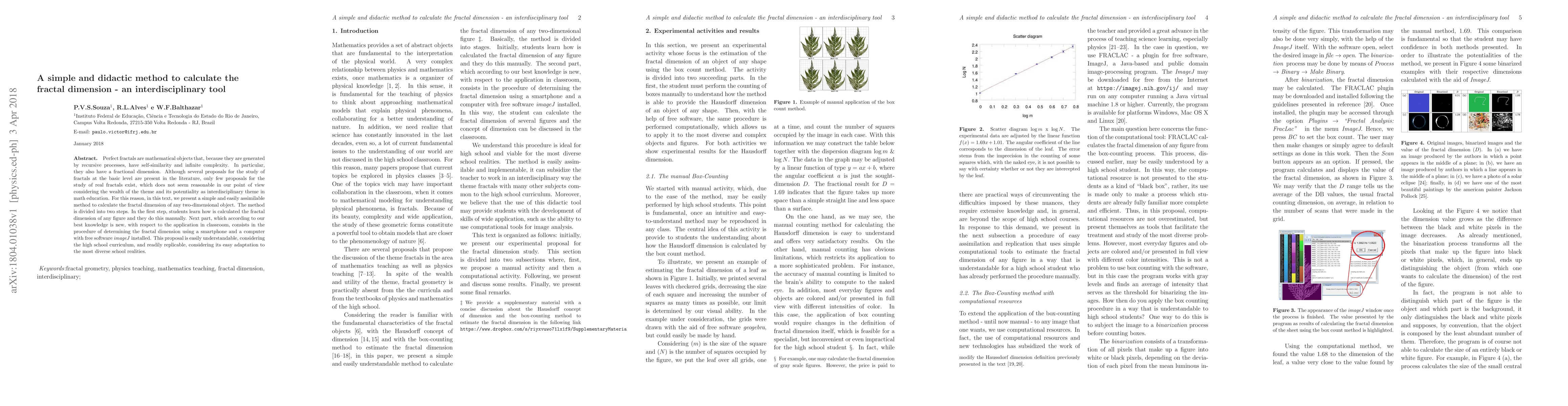 Perfect fractals are mathematical objects that, because they are generated by recursive processes, have self-similarity and infinite complexity. In particular, they also have a fractional dimension. Although several proposals for the study of fractals at the basic level are present in the literature, only few proposals for the study of real fractals exist, which does not seem reasonable in our point of view considering the wealth of the theme and its potentiality as interdisciplinary theme in math education. For this reason, in this text, we present a simple and easily assimilable method to calculate the fractal dimension of any two-dimensional object. The method is divided into two steps. In the first step, students learn how is calculated the fractal dimension of any figure and they do this manually. Next part, which according to our best knowledge is new, with respect to the application in classroom, consists in the procedure of determining the fractal dimension using a smartphone and a computer with free software \textit {imageJ} installed. This proposal is easily understandable, considering the high school curriculum, and readily replicable, considering its easy adaptation to the most diverse school realities.