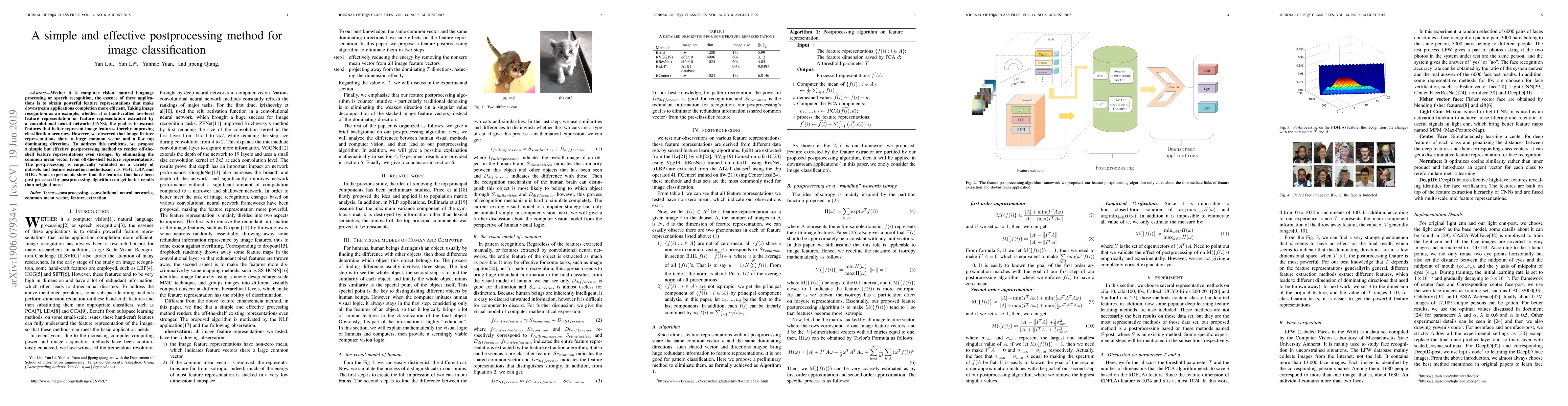 Whether it is computer vision, natural language processing or speech recognition, the essence of these applications is to obtain powerful feature representations that make downstream applications completion more efficient. Taking image recognition as an example, whether it is hand-crafted low-level feature representation or feature representation extracted by a convolutional neural networks(CNNs), the goal is to extract features that better represent image features, thereby improving classification accuracy. However, we observed that image feature representations share a large common vector and a few top dominating directions. To address this problems, we propose a simple but effective postprocessing method to render off-the-shelf feature representations even stronger by eliminating the common mean vector from off-the-shelf feature representations. The postprocessing is empirically validated on a variety of datasets and feature extraction methods.such as VGG, LBP, and HOG. Some experiments show that the features that have been post-processed by postprocessing algorithm can get better results than original ones.