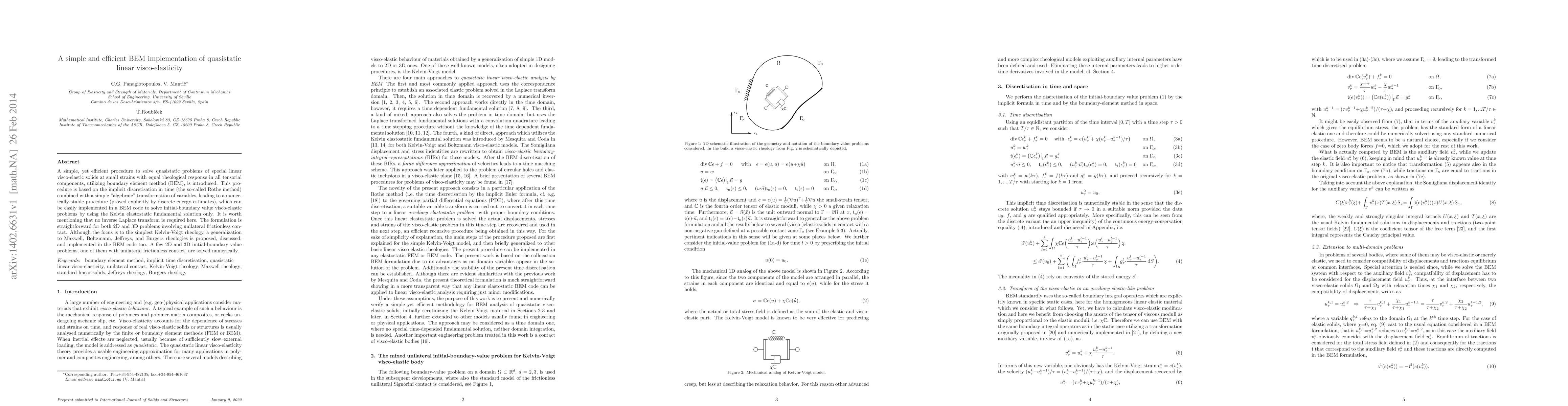 A simple, yet efficient procedure to solve quasistatic problems of special linear visco-elastic solids at small strains with equal rheological response in all tensorial components, utilizing boundary element method (BEM), is introduced. This procedure is based on the implicit discretisation in time (the so-called Rothe method) combined with a simple "algebraic" transformation of variables, leading to a numerically stable procedure (proved explicitly by discrete energy estimates), which can be easily implemented in a BEM code to solve initial-boundary value visco-elastic problems by using the Kelvin elastostatic fundamental solution only. It is worth mentioning that no inverse Laplace transform is required here. The formulation is straightforward for both 2D and 3D problems involving unilateral frictionless contact. Although the focus is to the simplest Kelvin-Voigt rheology, a generalization to Maxwell, Boltzmann, Jeffreys, and Burgers rheologies is proposed, discussed, and implemented in the BEM code too. A few 2D and 3D initial-boundary value problems, one of them with unilateral frictionless contact, are solved numerically.