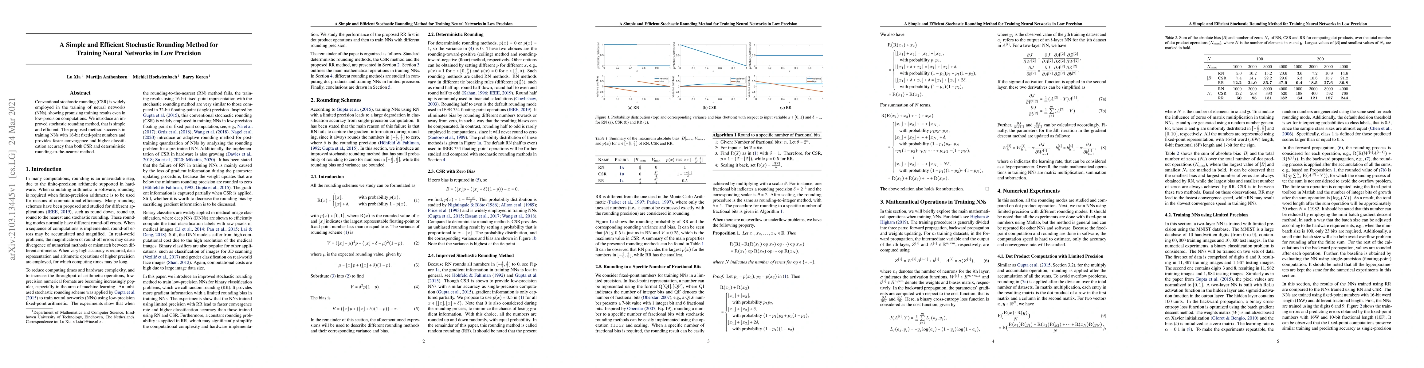 This paper proposes a simple and efficient stochastic rounding method for training neural networks using low-precision computations, achieving faster convergence and higher classification accuracy compared to conventional stochastic rounding and deterministic rounding methods.