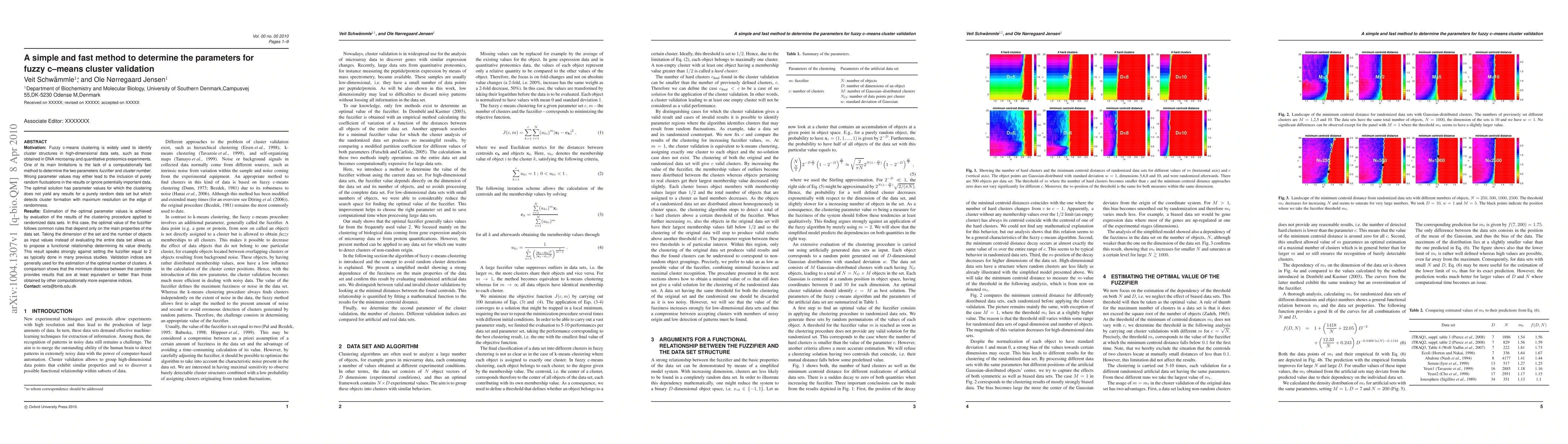 A new method offers a simple and fast way to determine parameters for fuzzy c-means clustering, improving accuracy and resolving issues with random data detection. The proposed method compares favorably to existing validation indices, providing a more efficient solution for researchers.
