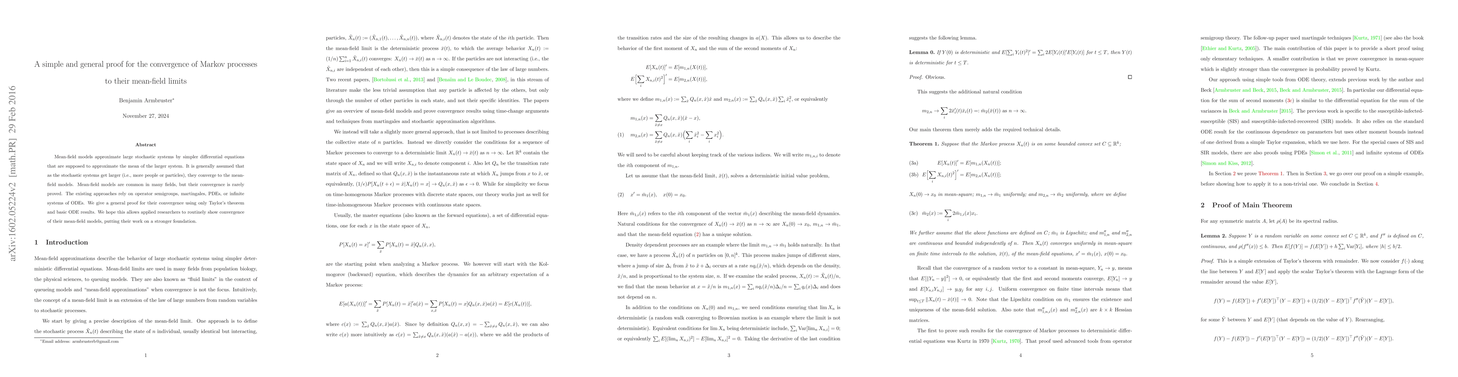 This paper presents a straightforward proof for the convergence of complex Markov processes to simpler mean-field models, using Taylor's theorem and basic ODE results. This simplifies the validation process for researchers in various fields using mean-field models.