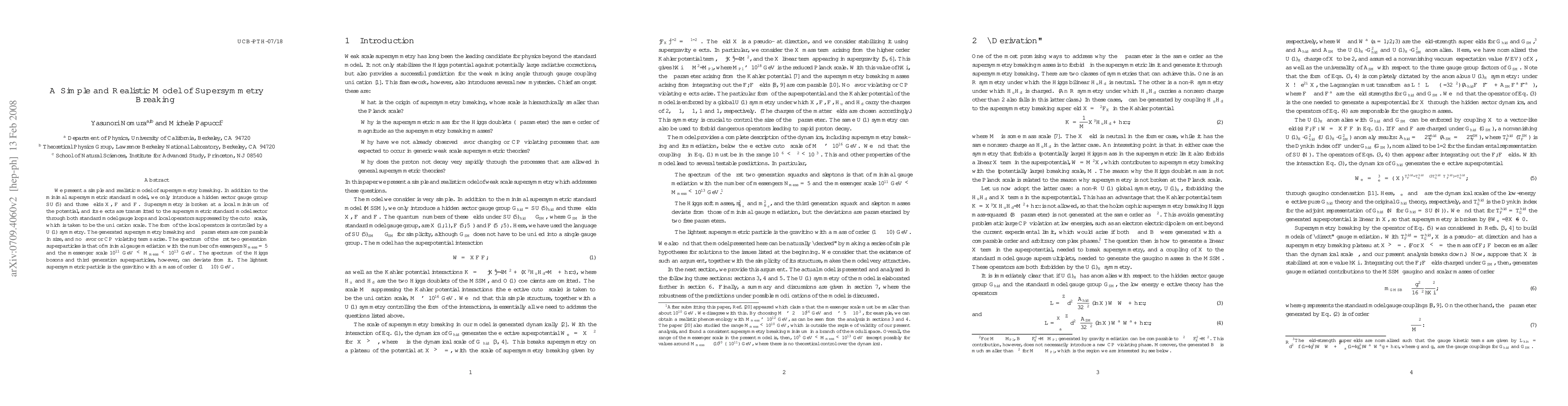 This paper proposes a straightforward model for supersymmetry breaking using a hidden sector gauge group SU(5) and three additional fields, transmitting effects to the standard model via gauge loops and suppressed local operators. The gravitino is identified as the lightest supersymmetric particle with a mass range of (1-10) GeV.