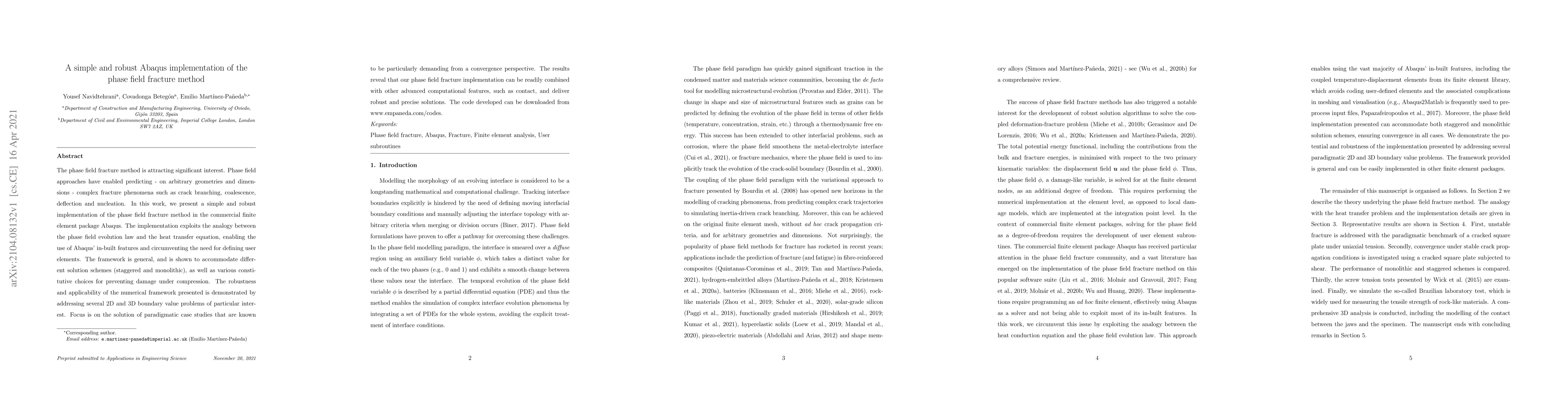 This paper presents a straightforward and reliable implementation of the phase field fracture method in Abaqus, leveraging the heat transfer equation analogy to avoid user-defined elements. The framework accommodates various solution schemes and constitutive models, demonstrating robustness through complex 2D and 3D fracture problems, and showing compatibility with advanced features like contact.