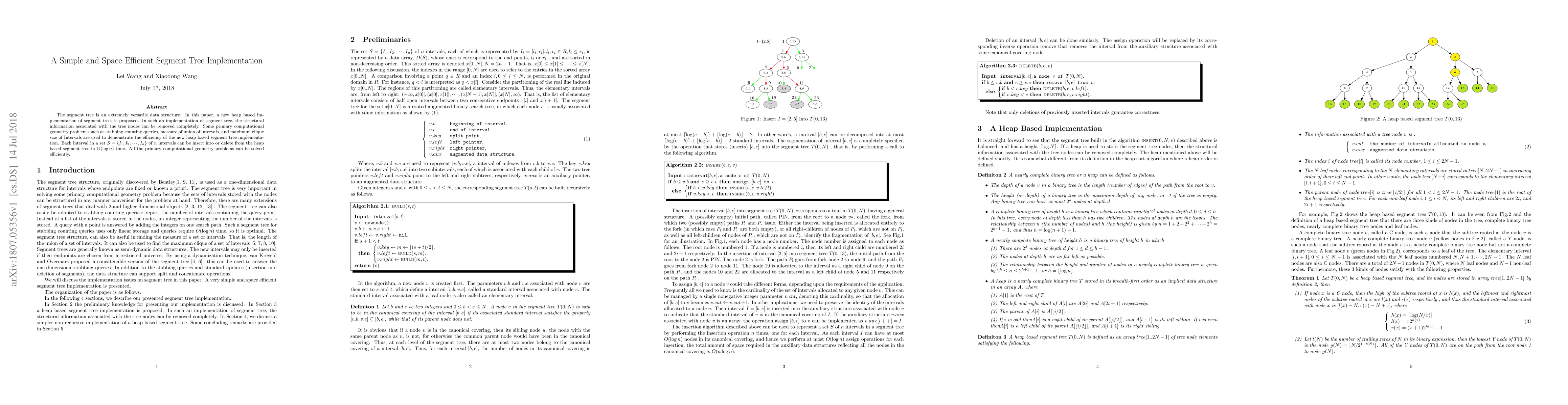 A new heap-based segment tree implementation is proposed, enabling efficient insertion, deletion, and solving of various computational geometry problems in O(log n) time.