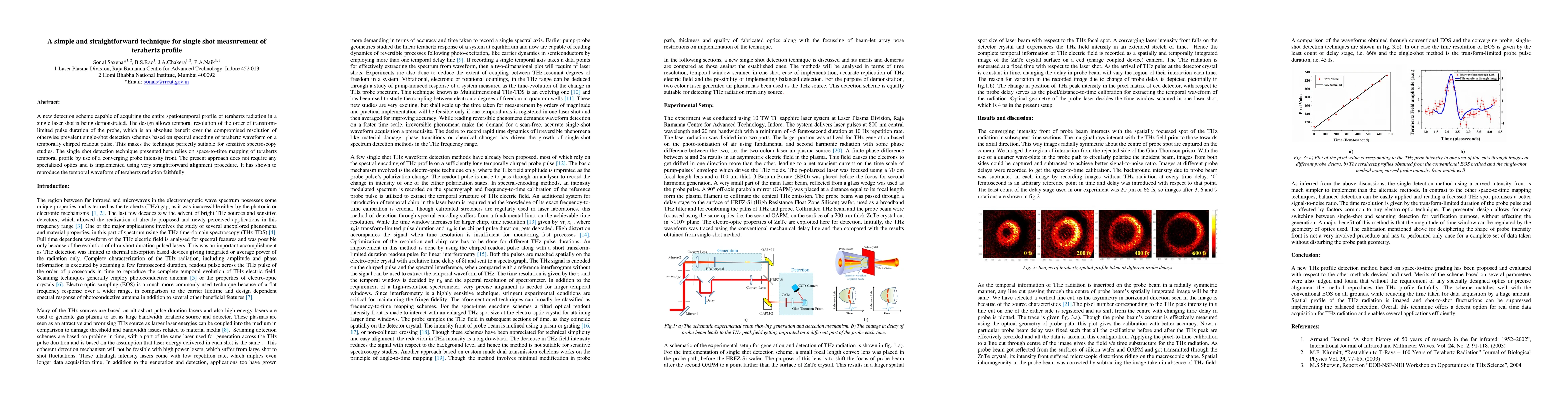 This paper introduces a novel single-shot detection technique for capturing the entire spatiotemporal profile of terahertz radiation in one laser shot, offering temporal resolution comparable to the probe's pulse duration. The method employs space-to-time mapping without requiring specialized optics, making it ideal for sensitive spectroscopy studies.