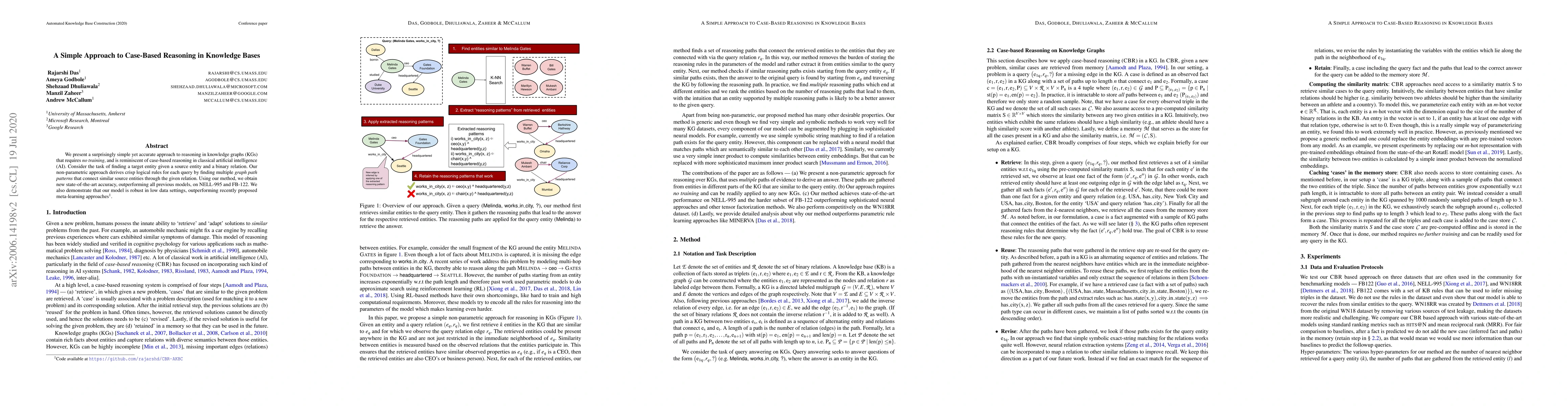 Researchers develop a simple approach to case-based reasoning in knowledge graphs that outperforms previous models on tasks like entity matching, requiring no training or data.