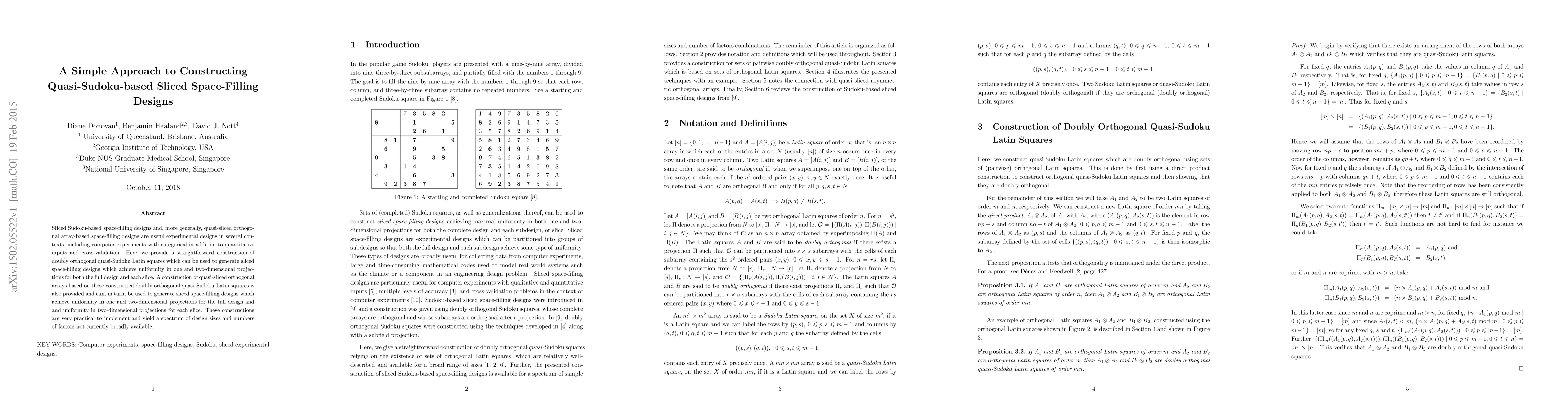 This paper presents a simple method for constructing quasi-Sudoku-based sliced space-filling designs, achieving uniformity in projections for both the full design and individual slices. The approach generates doubly orthogonal quasi-Sudoku Latin squares, facilitating the creation of quasi-sliced orthogonal arrays for versatile experimental designs.