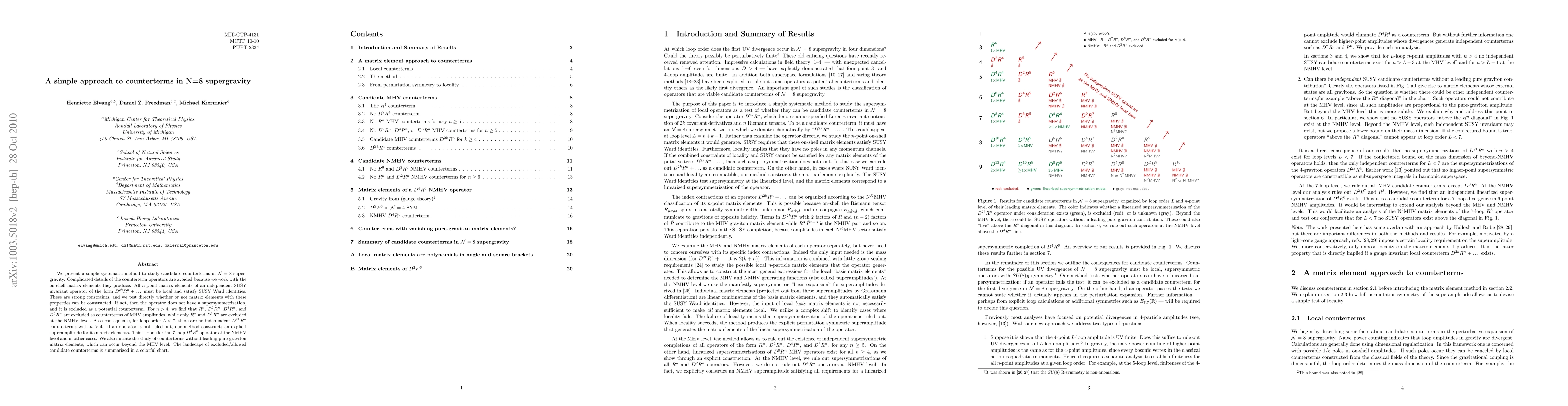 We present a simple systematic method to study candidate counterterms in N=8 supergravity. Complicated details of the counterterm operators are avoided because we work with the on-shell matrix elements they produce. All n-point matrix elements of an independent SUSY invariant operator of the form D^{2k} R^n +... must be local and satisfy SUSY Ward identities. These are strong constraints, and we test directly whether or not matrix elements with these properties can be constructed. If not, then the operator does not have a supersymmetrization, and it is excluded as a potential counterterm. For n>4, we find that R^n, D^2 R^n, D^4 R^n, and D^6 R^n are excluded as counterterms of MHV amplitudes, while only R^n and D^2 R^n are excluded at the NMHV level. As a consequence, for loop order L<7, there are no independent D^{2k}R^n counterterms with n>4. If an operator is not ruled out, our method constructs an explicit superamplitude for its matrix elements. This is done for the 7-loop D^4 R^6 operator at the NMHV level and in other cases. We also initiate the study of counterterms without leading pure-graviton matrix elements, which can occur beyond the MHV level. The landscape of excluded/allowed candidate counterterms is summarized in a colorful chart.