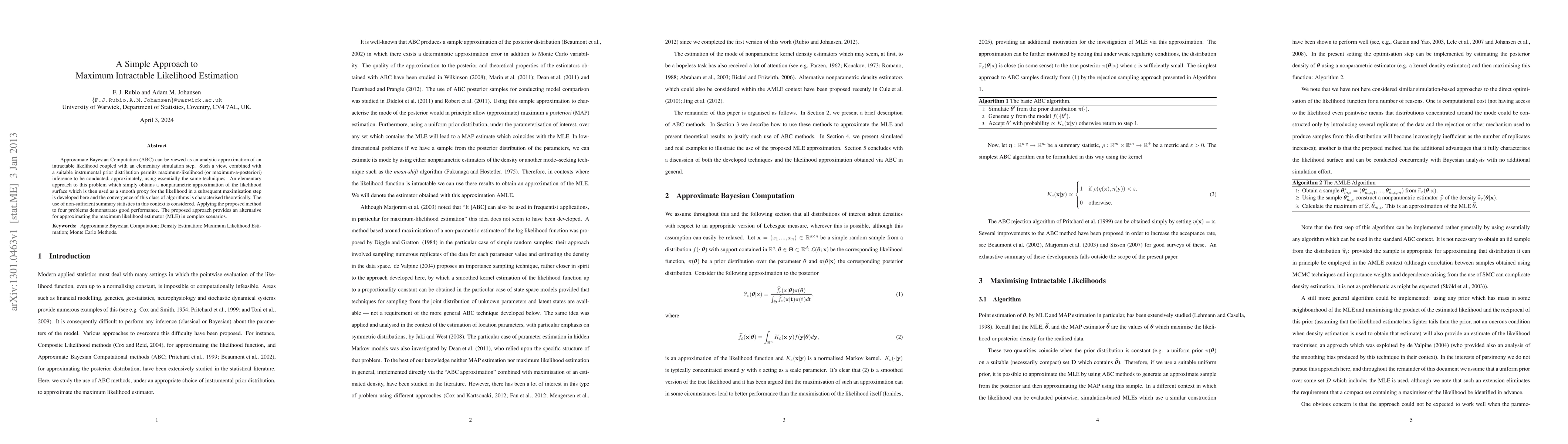 This paper proposes an elementary method for approximate Bayesian computation (ABC) that uses a nonparametric approximation of the likelihood surface to conduct maximum likelihood estimation in complex scenarios. The method demonstrates good performance in four applied problems and provides an alternative to traditional maximum likelihood estimation in intractable likelihood situations.