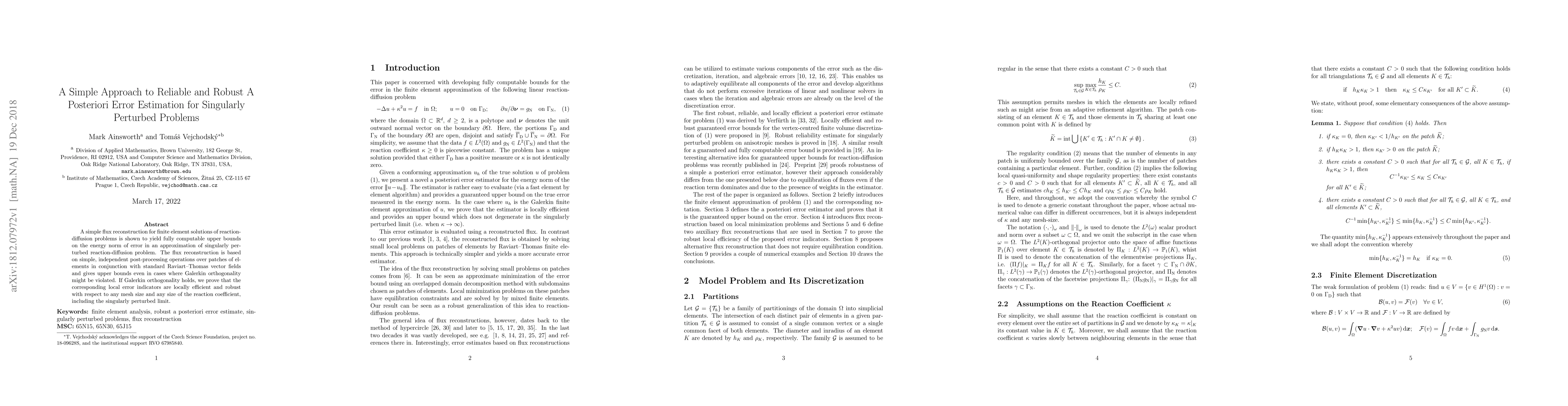 A simple flux reconstruction for finite element solutions of reaction-diffusion problems is shown to yield fully computable upper bounds on the energy norm of error in an approximation of singularly perturbed reaction-diffusion problem. The flux reconstruction is based on simple, independent post-processing operations over patches of elements in conjunction with standard Raviart--Thomas vector fields and gives upper bounds even in cases where Galerkin orthogonality might be violated. If Galerkin orthogonality holds, we prove that the corresponding local error indicators are locally efficient and robust with respect to any mesh size and any size of the reaction coefficient, including the singularly perturbed limit.