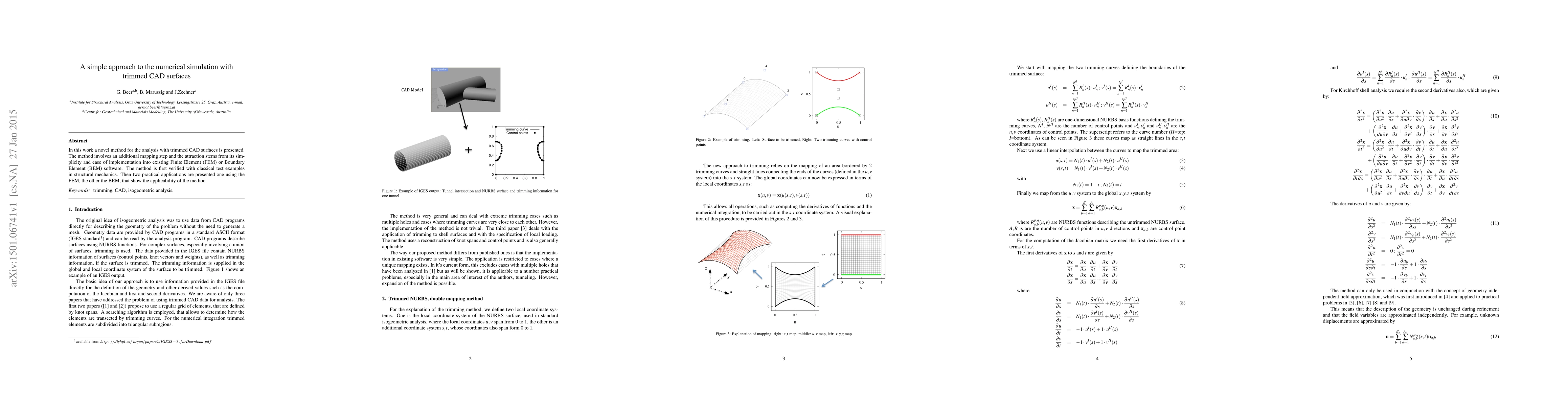 In this work a novel method for the analysis with trimmed CAD surfaces is presented. The method involves an additional mapping step and the attraction stems from its sim- plicity and ease of implementation into existing Finite Element (FEM) or Boundary Element (BEM) software. The method is first verified with classical test examples in structural mechanics. Then two practical applications are presented one using the FEM, the other the BEM, that show the applicability of the method.