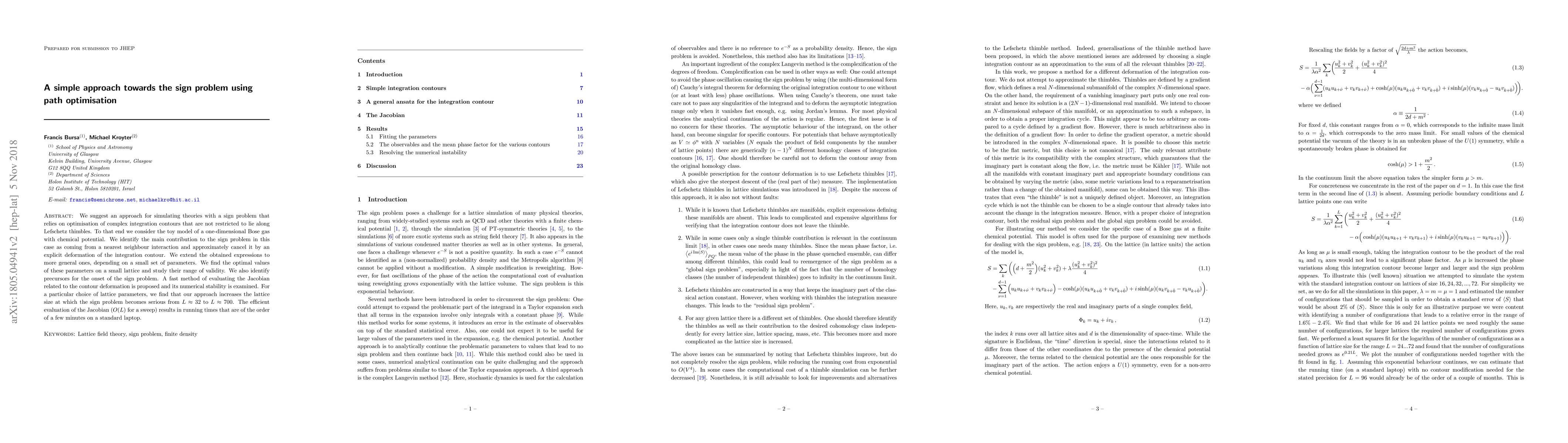 We suggest an approach for simulating theories with a sign problem that relies on optimisation of complex integration contours that are not restricted to lie along Lefschetz thimbles. To that end we consider the toy model of a one-dimensional Bose gas with chemical potential. We identify the main contribution to the sign problem in this case as coming from a nearest neighbour interaction and approximately cancel it by an explicit deformation of the integration contour. We extend the obtained expressions to more general ones, depending on a small set of parameters. We find the optimal values of these parameters on a small lattice and study their range of validity. We also identify precursors for the onset of the sign problem. A fast method of evaluating the Jacobian related to the contour deformation is proposed and its numerical stability is examined. For a particular choice of lattice parameters, we find that our approach increases the lattice size at which the sign problem becomes serious from $L \approx 32$ to $L \approx 700$. The efficient evaluation of the Jacobian ($O(L)$ for a sweep) results in running times that are of the order of a few minutes on a standard laptop.