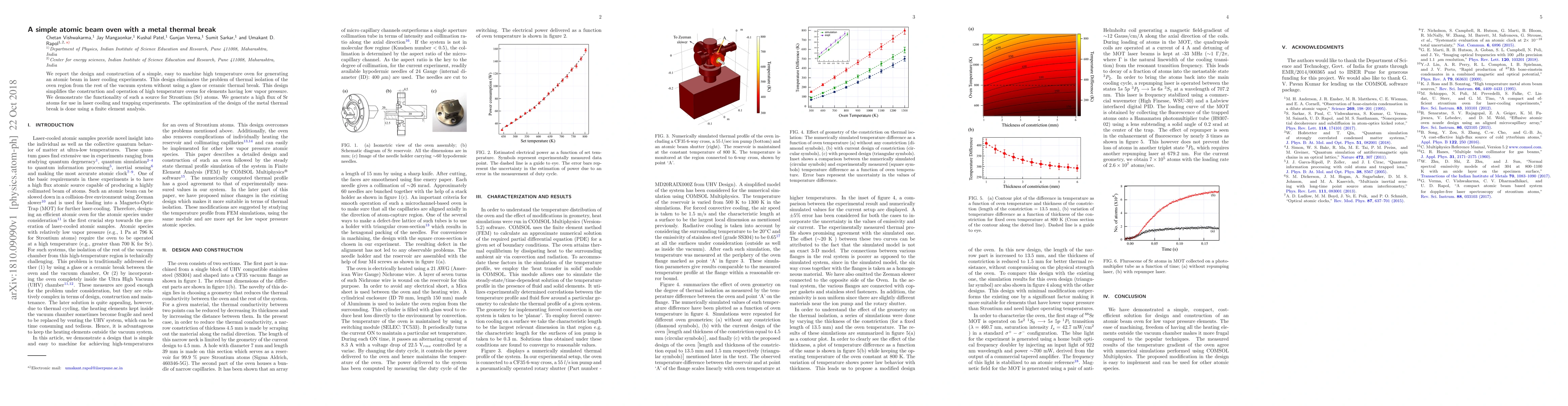 We report the design and construction of a simple, easy to machine high-temperature oven for generating an atomic beam in laser cooling experiments. This design eliminates the problem of thermal isolation of the oven region from the rest of the vacuum system without using a glass or ceramic thermal break. This design simplifies the construction and operation of high-temperature ovens for elements having low vapor pressure. We demonstrate the functionality of such a source for Strontium (Sr) atoms. We generate a high flux of Sr atoms for use in laser cooling and trapping experiments. The optimization of the design of the metal thermal break is done using a finite element analysis.