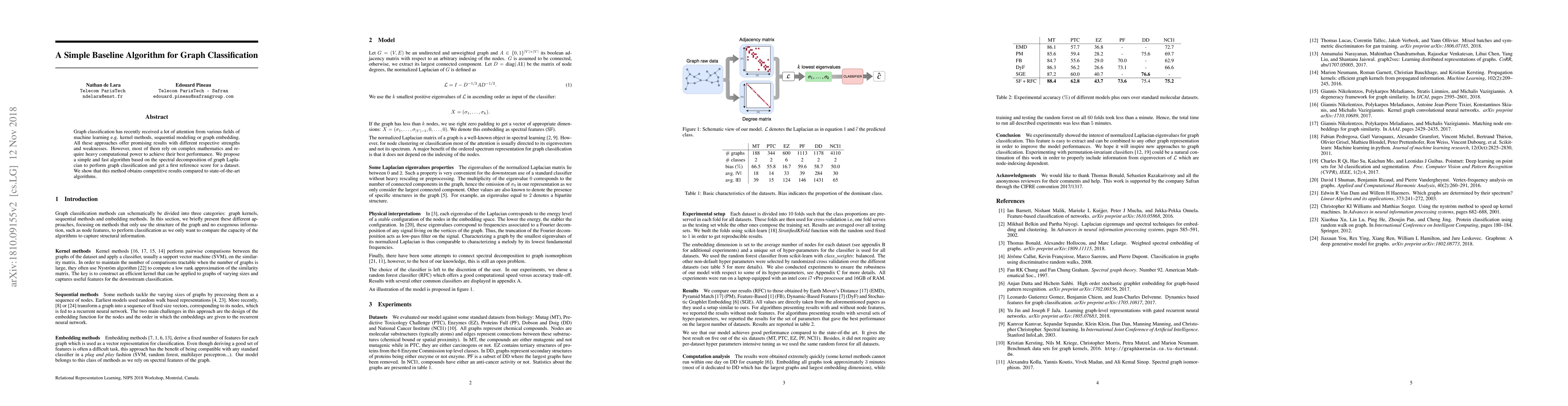 This paper proposes a straightforward graph classification algorithm based on spectral decomposition of the graph Laplacian, aiming to provide a simple yet competitive baseline. The method achieves competitive results compared to more complex state-of-the-art approaches, emphasizing its efficiency and ease of implementation.