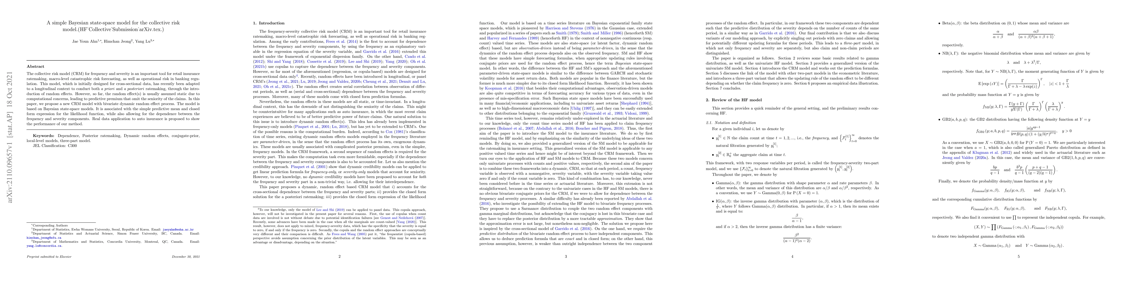 The collective risk model (CRM) for frequency and severity is an important tool for retail insurance ratemaking, macro-level catastrophic risk forecasting, as well as operational risk in banking regulation. This model, which is initially designed for cross-sectional data, has recently been adapted to a longitudinal context to conduct both a priori and a posteriori ratemaking, through the introduction of random effects. However, so far, the random effect(s) is usually assumed static due to computational concerns, leading to predictive premium that omit the seniority of the claims. In this paper, we propose a new CRM model with bivariate dynamic random effect process. The model is based on Bayesian state-space models. It is associated with the simple predictive mean and closed form expression for the likelihood function, while also allowing for the dependence between the frequency and severity components. Real data application to auto insurance is proposed to show the performance of our method.