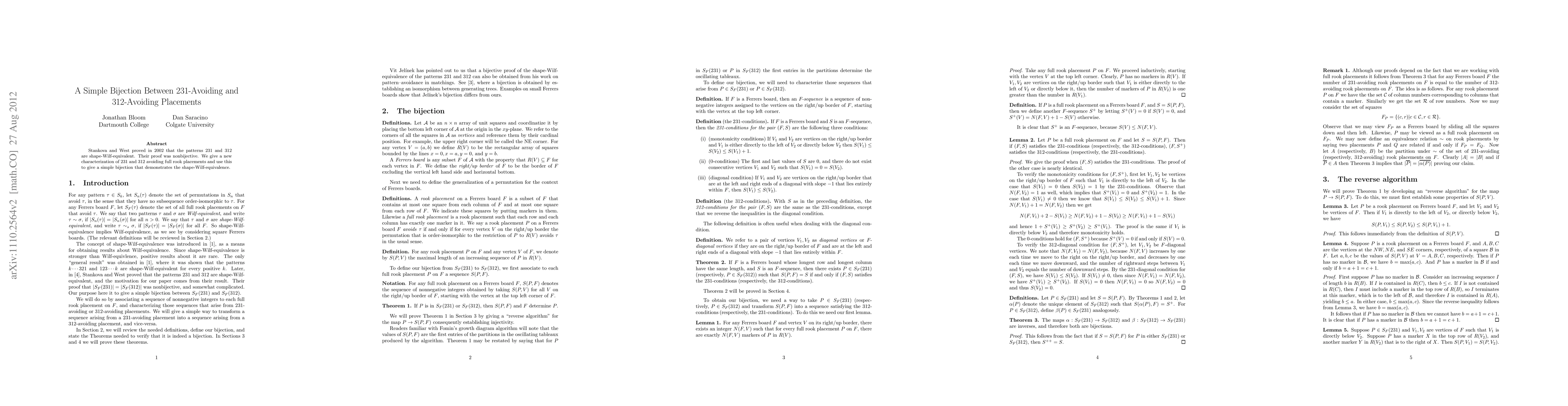 Researchers provide a new, bijective proof that patterns 231 and 312 are shape-Wilf-equivalent, offering a simpler alternative to previous proofs.