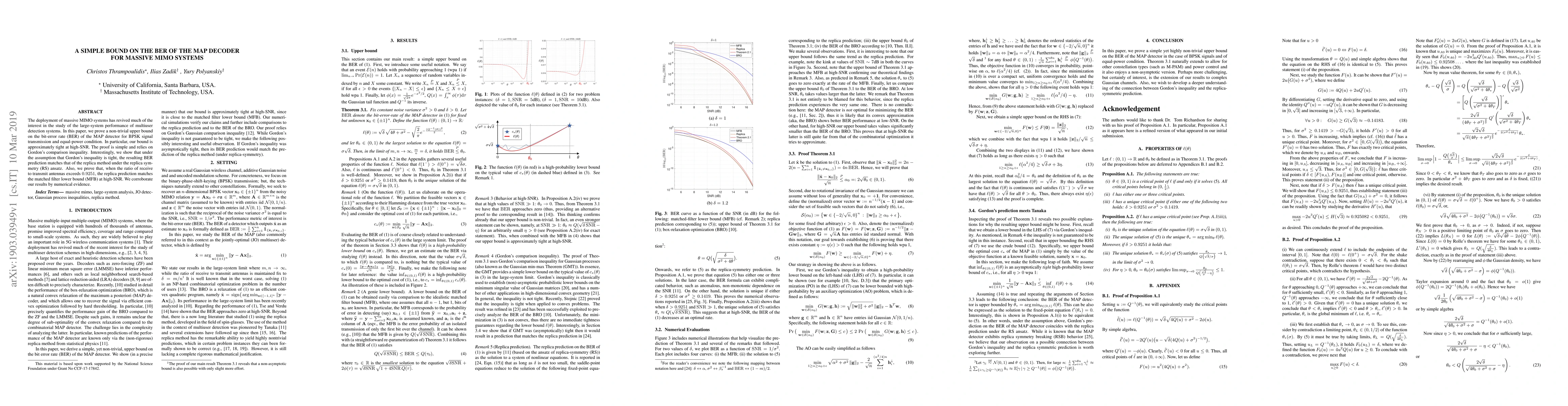 Researchers prove a simple upper bound on the bit-error rate of massive MIMO systems' MAP decoder for BPSK transmission, with the bound matching replica method predictions at high-SNR levels.