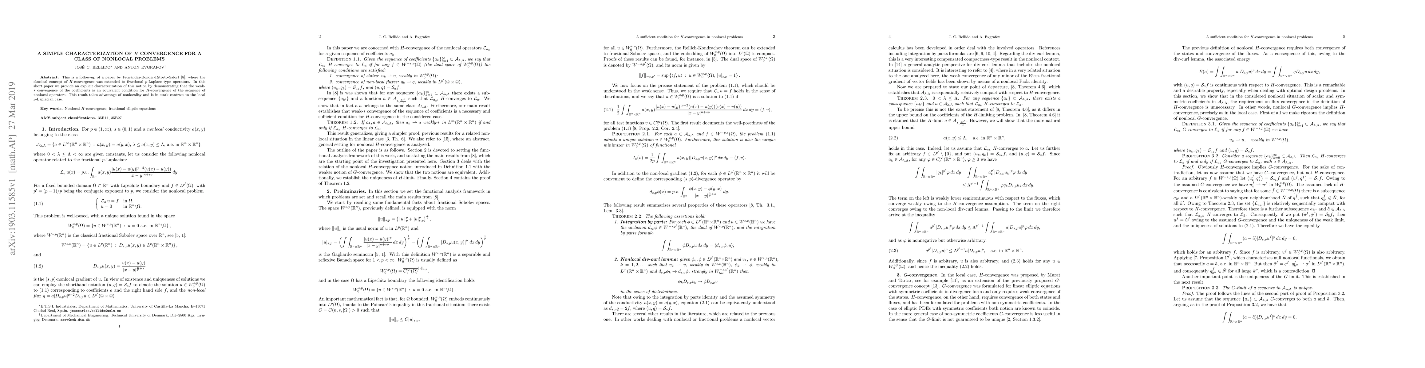 Researchers provide a new characterization of H-convergence for nonlocal operators by showing that weak-* convergence of coefficients is an equivalent condition, contrasting with local p-Laplace cases.