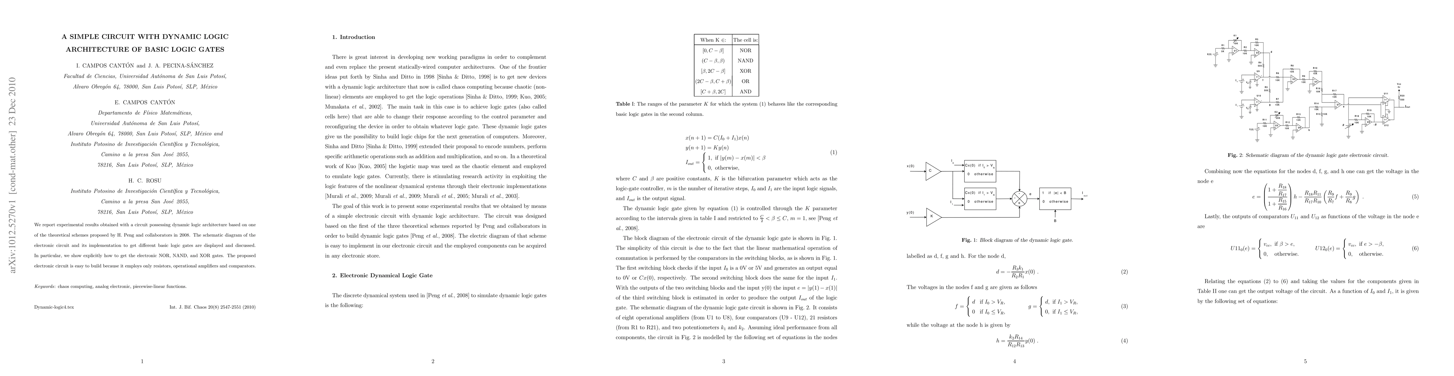 This paper presents an experimental circuit with a dynamic logic architecture that implements basic logic gates using resistors, operational amplifiers, and comparators. The study demonstrates the construction of electronic NOR, NAND, and XOR gates based on a theoretical scheme proposed by H. Peng in 2008.