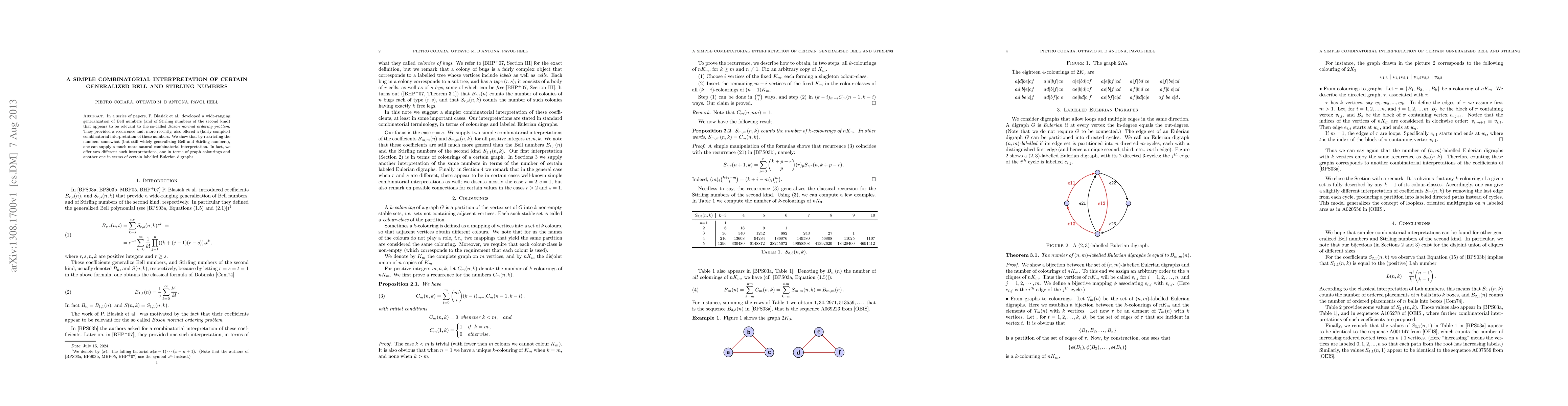 In a series of papers, P. Blasiak et al. developed a wide-ranging generalization of Bell numbers (and of Stirling numbers of the second kind) that appears to be relevant to the so-called Boson normal ordering problem. They provided a recurrence and, more recently, also offered a (fairly complex) combinatorial interpretation of these numbers. We show that by restricting the numbers somewhat (but still widely generalizing Bell and Stirling numbers), one can supply a much more natural combinatorial interpretation. In fact, we offer two different such interpretations, one in terms of graph colourings and another one in terms of certain labelled Eulerian digraphs.