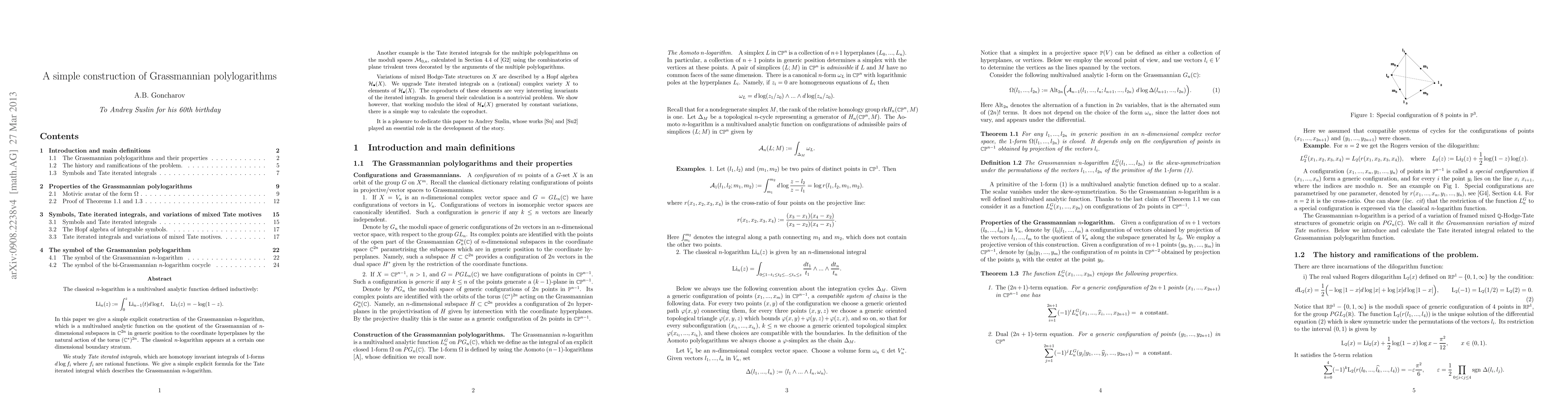 This paper presents a straightforward construction of Grassmannian n-logarithms, focusing on multivalued analytic functions derived from the Grassmannian quotient. It also explores Tate iterated integrals and introduces a Hopf algebra of integrable symbols for algebraic varieties, providing a clear formula for these integrals related to Grassmannian polylogarithms.
