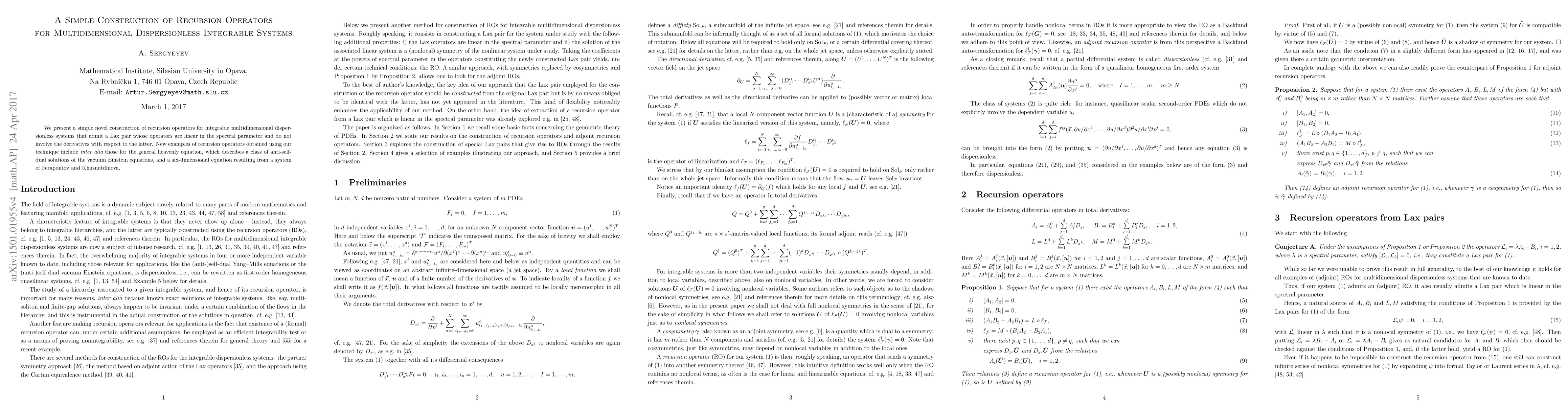We present a simple novel construction of recursion operators for integrable multidimensional dispersionless systems that admit a Lax pair whose operators are linear in the spectral parameter and do not involve the derivatives with respect to the latter. New examples of recursion operators obtained using our technique include {\em inter alia} those for the general heavenly equation, which describes a class of anti-self-dual solutions of the vacuum Einstein equations, and a six-dimensional equation resulting from a system of Ferapontov and Khusnutdinova.