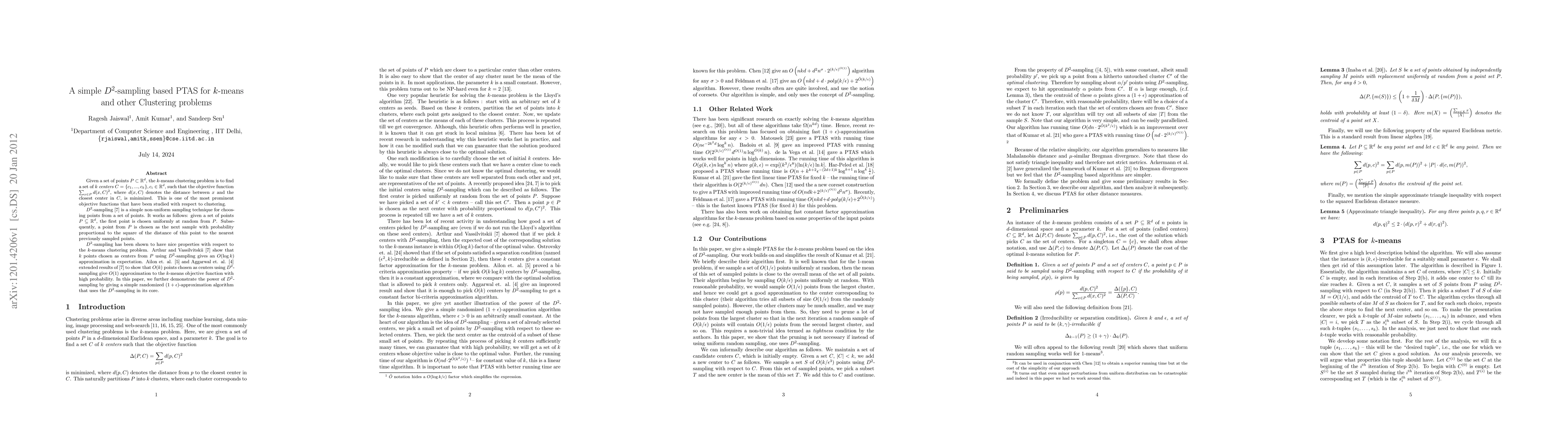 A new algorithm uses D^2-sampling to achieve a simple randomized (1 + ¸)-approximation for the k-means clustering problem with high probability.