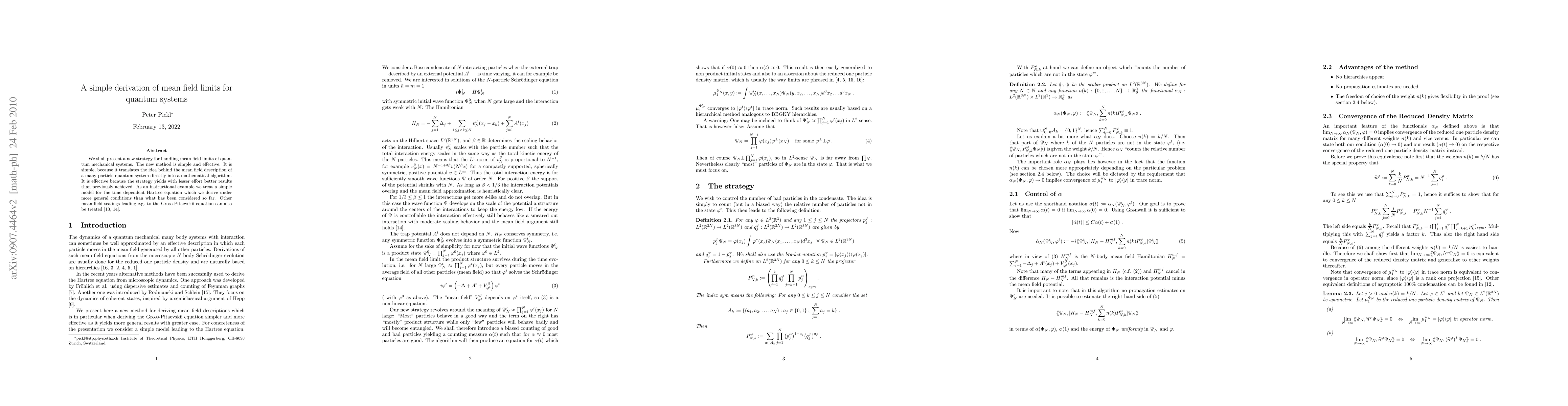 We shall present a new strategy for handling mean field limits of quantum mechanical systems. The new method is simple and effective. It is simple, because it translates the idea behind the mean field description of a many particle quantum system directly into a mathematical algorithm. It is effective because the strategy yields with lesser effort better results than previously achieved. As an instructional example we treat a simple model for the time dependent Hartree equation which we derive under more general conditions than what has been considered so far. Other mean field scalings leading e.g. to the Gross-Pitaevskii equation can also be treated.