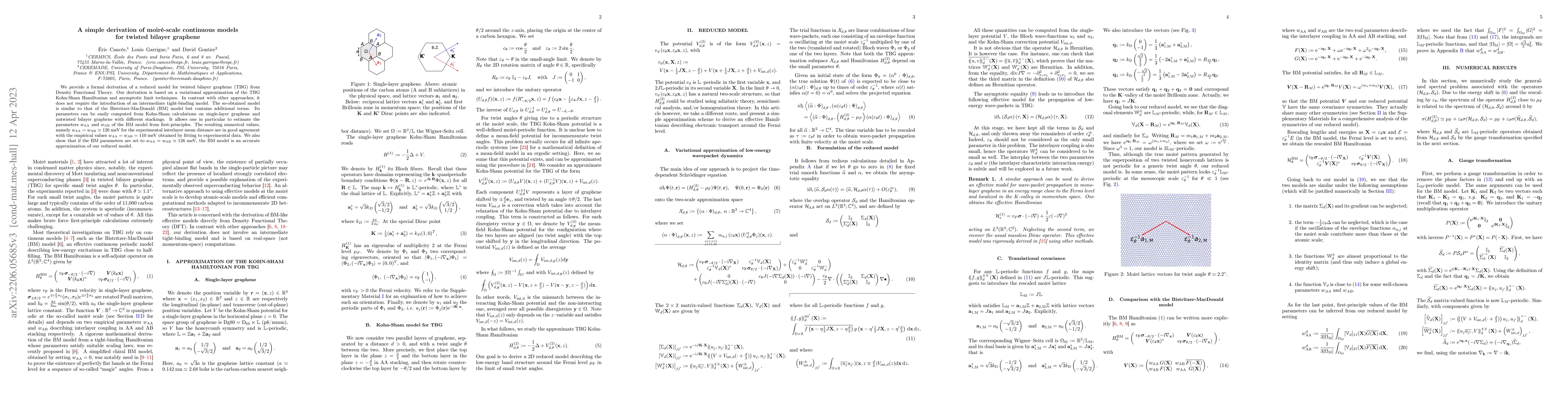 This paper derives a continuous moiré-scale model for twisted bilayer graphene directly from Density Functional Theory, avoiding intermediate tight-binding models. The derived model, similar to the Bistritzer-MacDonald model, provides parameters that align well with empirical values and accurately approximates the BM model when set to specific parameters.