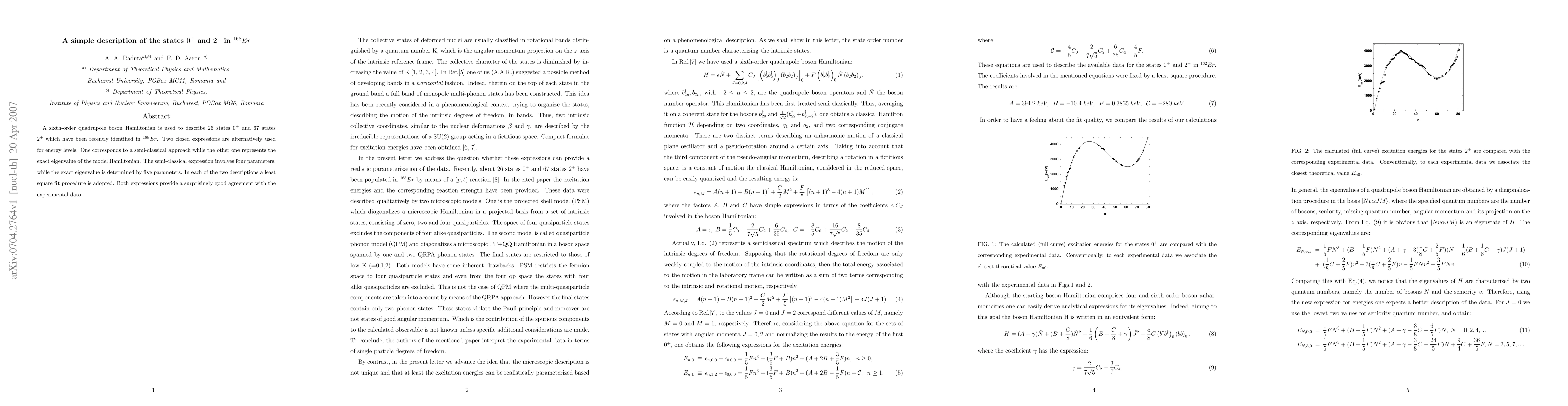 A sixth-order quadrupole boson Hamiltonian is used to describe 26 states $0^+$ and 67 states $2^+$ which have been recently identified in $^{168}Er$. Two closed expressions are alternatively used for energy levels. One corresponds to a semi-classical approach while the other one represents the exact eigenvalue of the model Hamiltonian. The semi-classical expression involves four parameters, while the exact eigenvalue is determined by five parameters. In each of the two descriptions a least square fit procedure is adopted. Both expressions provide a surprisingly good agreement with the experimental data.