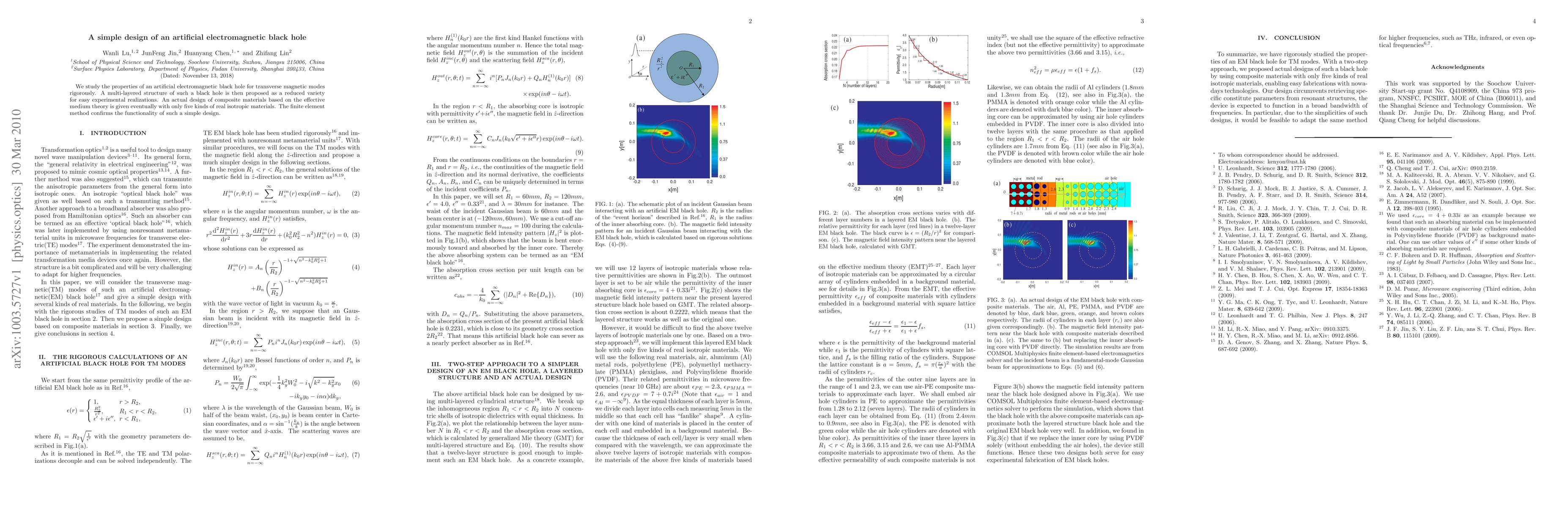 This paper proposes a multi-layered design for an artificial electromagnetic black hole using transverse magnetic modes, utilizing five types of real isotropic materials. The finite element method validates the effectiveness of this simple, feasible design.