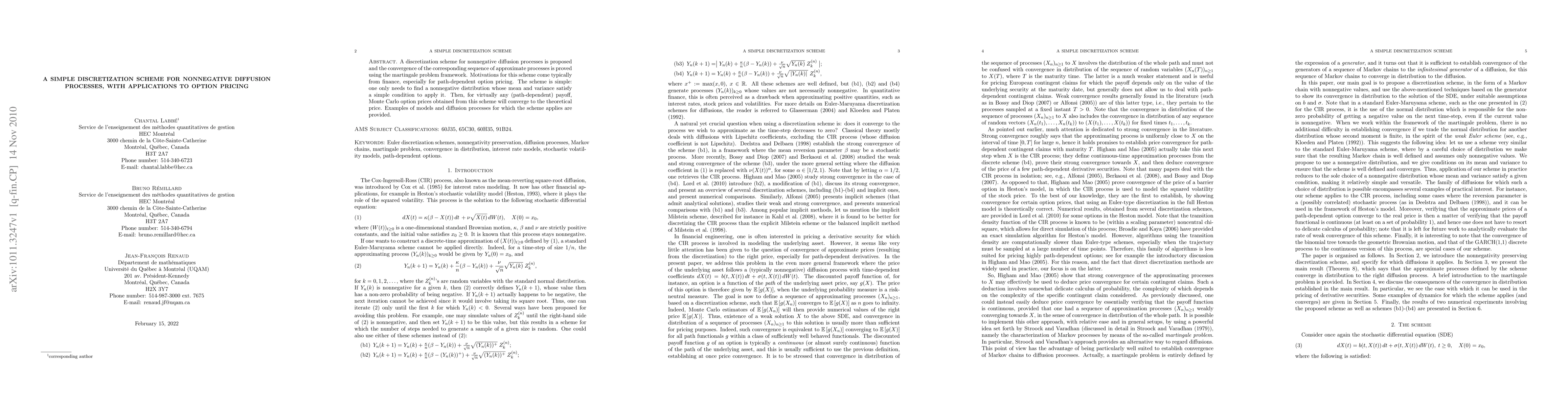 A discretization scheme for nonnegative diffusion processes is proposed and the convergence of the corresponding sequence of approximate processes is proved using the martingale problem framework. Motivations for this scheme come typically from finance, especially for path-dependent option pricing. The scheme is simple: one only needs to find a nonnegative distribution whose mean and variance satisfy a simple condition to apply it. Then, for virtually any (path-dependent) payoff, Monte Carlo option prices obtained from this scheme will converge to the theoretical price. Examples of models and diffusion processes for which the scheme applies are provided.