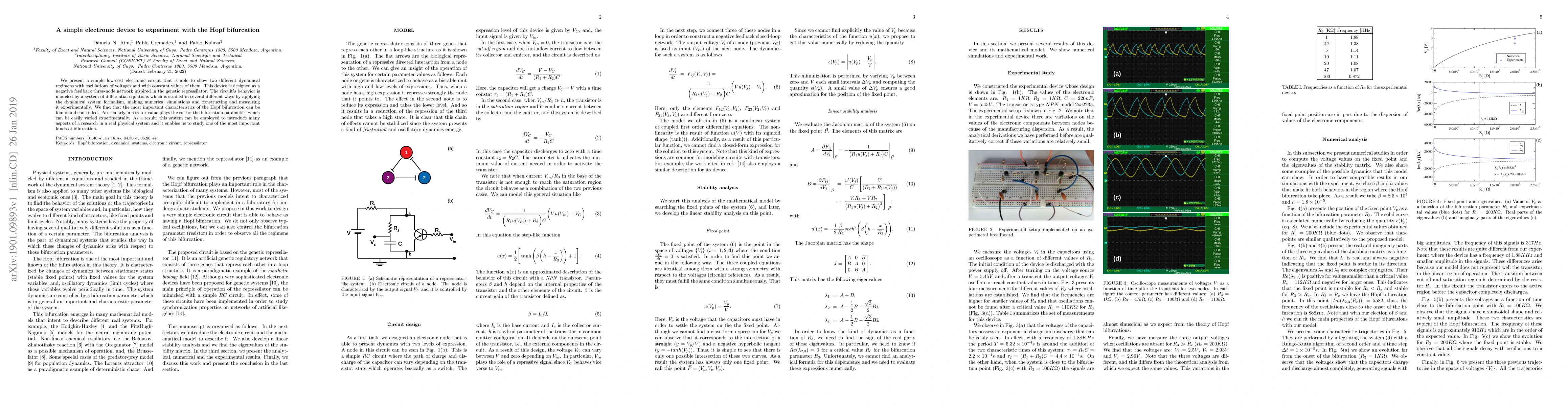 Researchers created a simple electronic circuit to model the Hopf bifurcation, demonstrating its key characteristics can be controlled and studied experimentally using a resistor as the bifurcation parameter.
