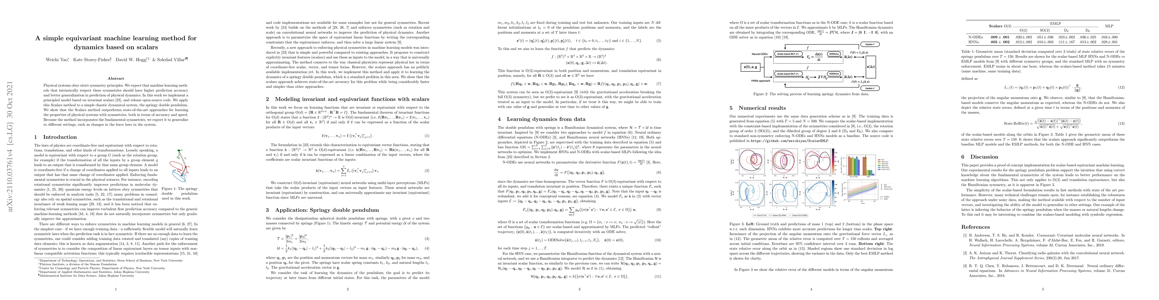 Physical systems obey strict symmetry principles. We expect that machine learning methods that intrinsically respect these symmetries should have higher prediction accuracy and better generalization in prediction of physical dynamics. In this work we implement a principled model based on invariant scalars, and release open-source code. We apply this Scalars method to a simple chaotic dynamical system, the springy double pendulum. We show that the Scalars method outperforms state-of-the-art approaches for learning the properties of physical systems with symmetries, both in terms of accuracy and speed. Because the method incorporates the fundamental symmetries, we expect it to generalize to different settings, such as changes in the force laws in the system.