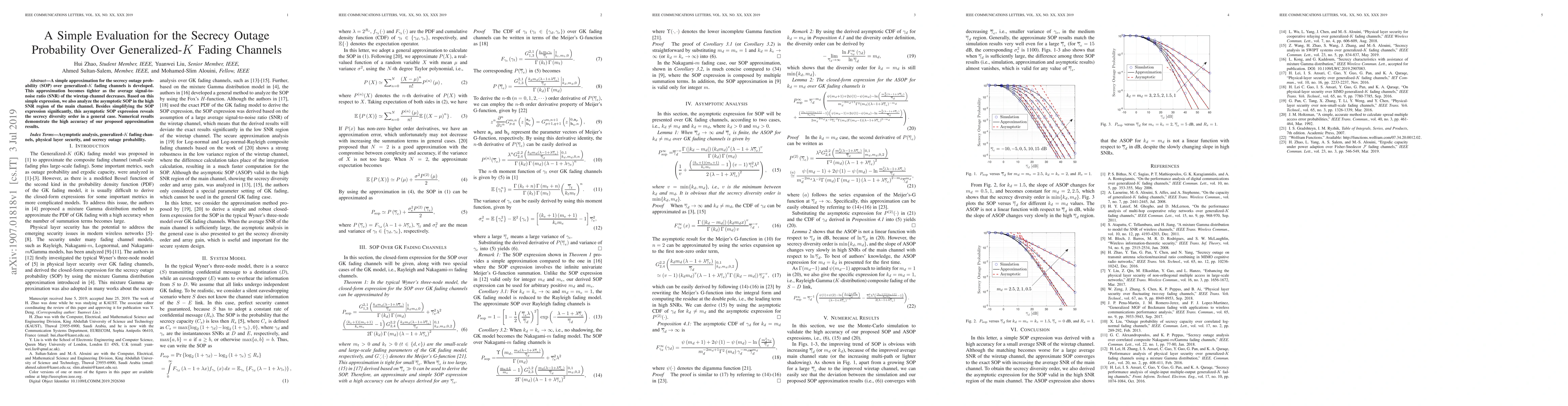 A simple approximation for the secrecy outage probability (SOP) over generalized-K fading channels is developed. This approximation becomes tighter as the average signal-to-noise ratio (SNR) of the wiretap channel decreases. Based on this simple expression, we also analyze the asymptotic SOP in the high SNR region of the main channel. Besides simplifying the SOP expression significantly, this asymptotic SOP expression reveals the secrecy diversity order in a general case. Numerical results demonstrate the high accuracy of our proposed approximation results.