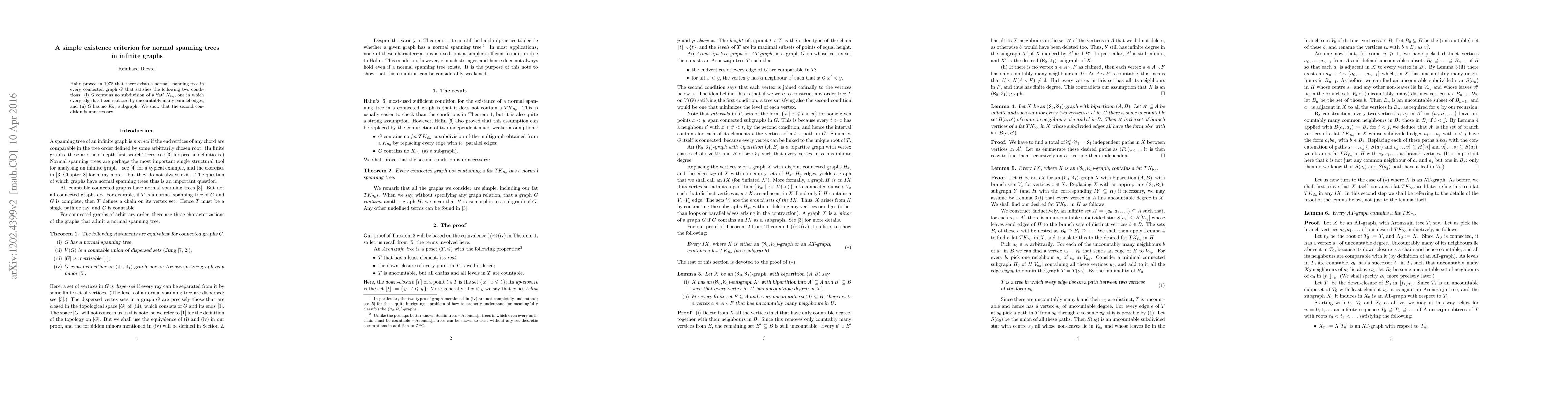 Halin proved in 1978 that there exists a normal spanning tree in every connected graph $G$ that satisfies the following two conditions: (i) $G$ contains no subdivision of a `fat' $K_{\aleph_0}$, one in which every edge has been replaced by uncountably many parallel edges; and (ii) $G$ has no $K_{\aleph_0}$ subgraph. We show that the second condition is unnecessary.