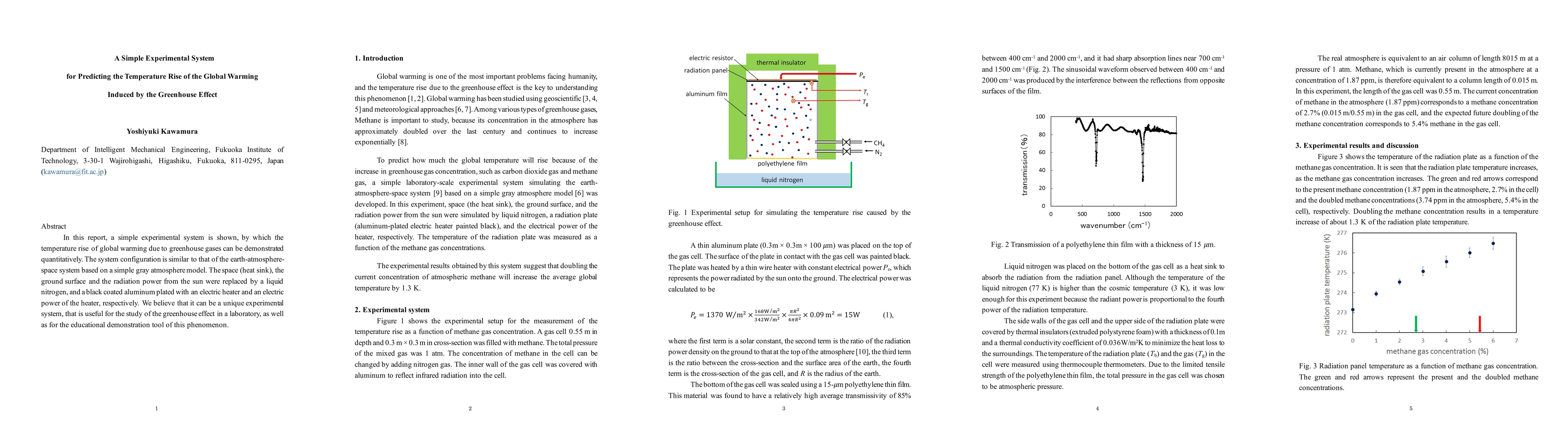 This research introduces a simplified experimental setup to quantitatively demonstrate global warming's temperature rise caused by greenhouse gases, using a gray atmosphere model. The system substitutes space, the ground, and solar radiation with liquid nitrogen, a black aluminum plate, and an electric heater, respectively, offering a unique laboratory tool for studying and teaching the greenhouse effect.