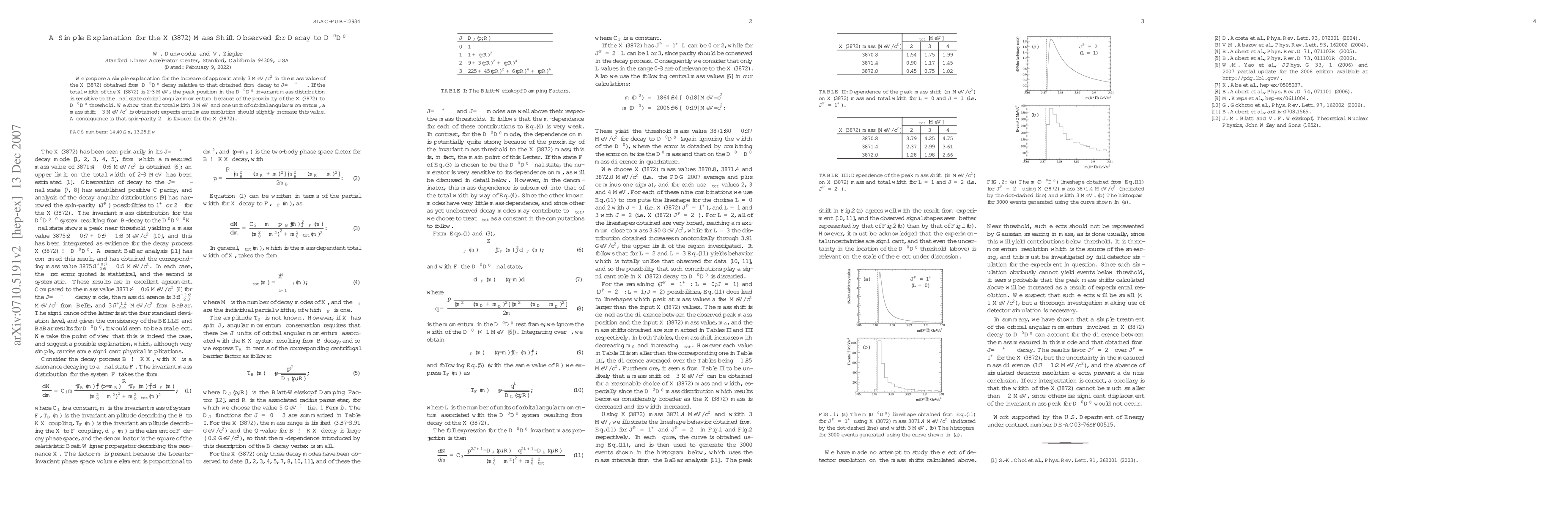 The paper introduces a simple explanation for the X(3872) mass shift based on orbital angular momentum in its decay to D*0D0bar, providing a clear mathematical framework for understanding the phenomenon.