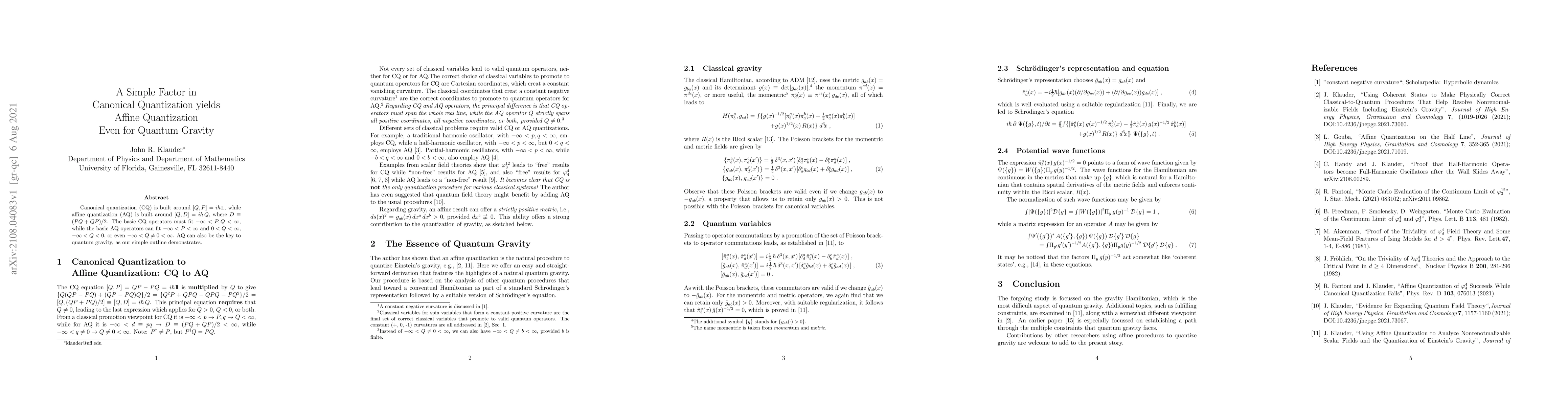 Canonical quantization (CQ) is built around $[Q,P]=i\hbar1\!\!1$, while affine quantization (AQ) is built around $[Q,D]=i\hbar\,Q$, where $D\equiv(PQ+QP)/2$. The basic CQ operators must fit $-\infty< P, Q <\infty$, while the basic AQ operators can fit $-\infty