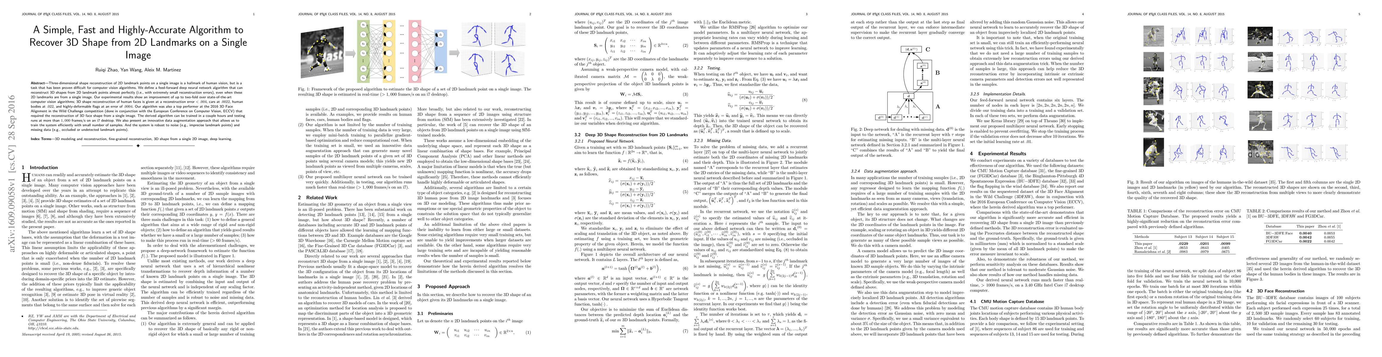 This paper presents a novel deep neural network algorithm that accurately reconstructs 3D shapes from 2D landmarks in a single image, outperforming existing methods by up to two-fold. The algorithm achieves low reconstruction errors across various objects and was a top performer in the 2016 3D Face Alignment in the Wild Challenge.