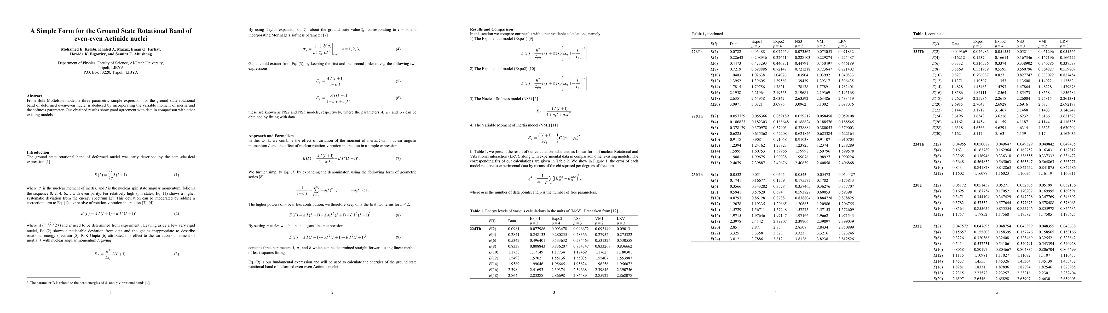 From Bohr-Mottelson model, a three parametric simple expression for the ground state rotational band of deformed even-even nuclei is deduced by incorporating the variable moment of inertia and the softness parameter. Our obtained results show good agreement with data in comparison with other existing models.