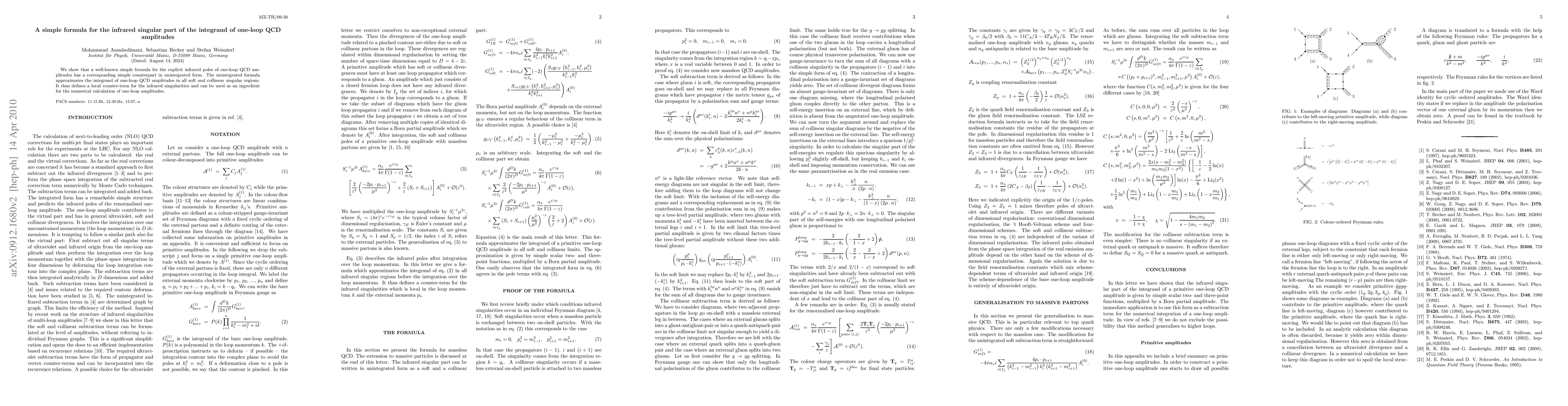 This paper presents a simple formula for the unintegrated infrared singular part of one-loop QCD amplitudes, providing a local counter-term for infrared singularities and aiding in the numerical calculation of these amplitudes.