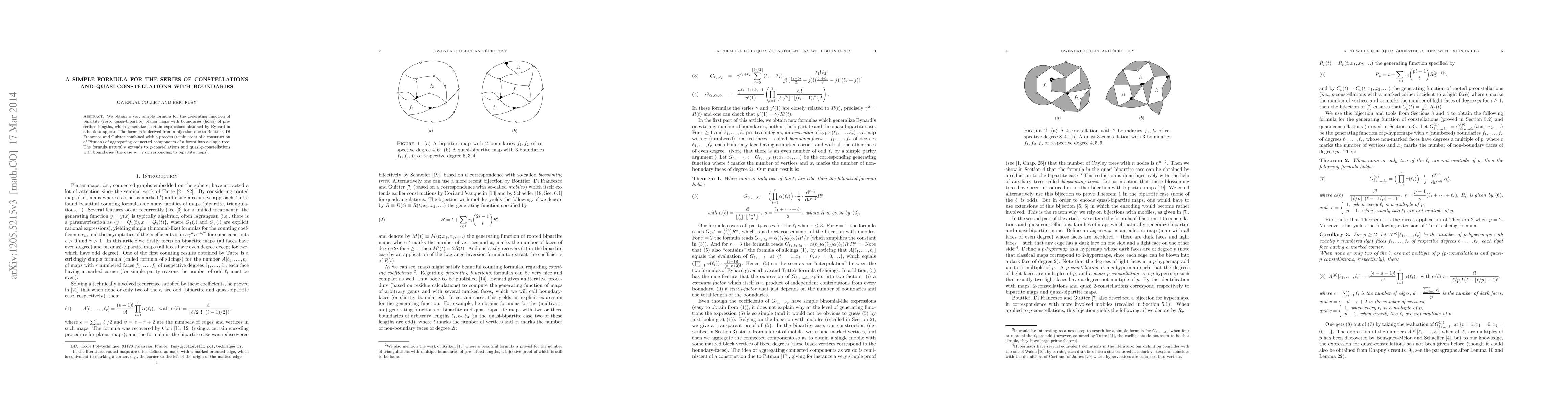 This paper presents a simple formula for the generating function of bipartite and quasi-bipartite planar maps with boundaries, derived from a bijection and a component aggregation process. It extends to $p$-constellations and quasi-$p$-constellations with boundaries.