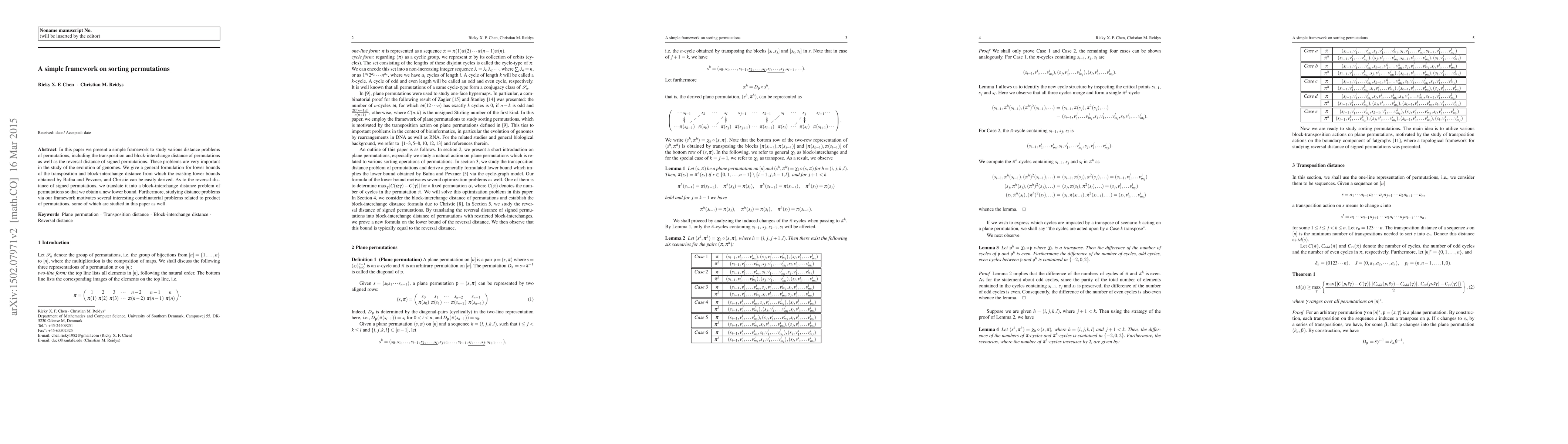 A new framework for studying distance problems in permutations is introduced, providing lower bounds for transposition and block-interchange distances, and translating reversal distance to a related block-interchange problem.