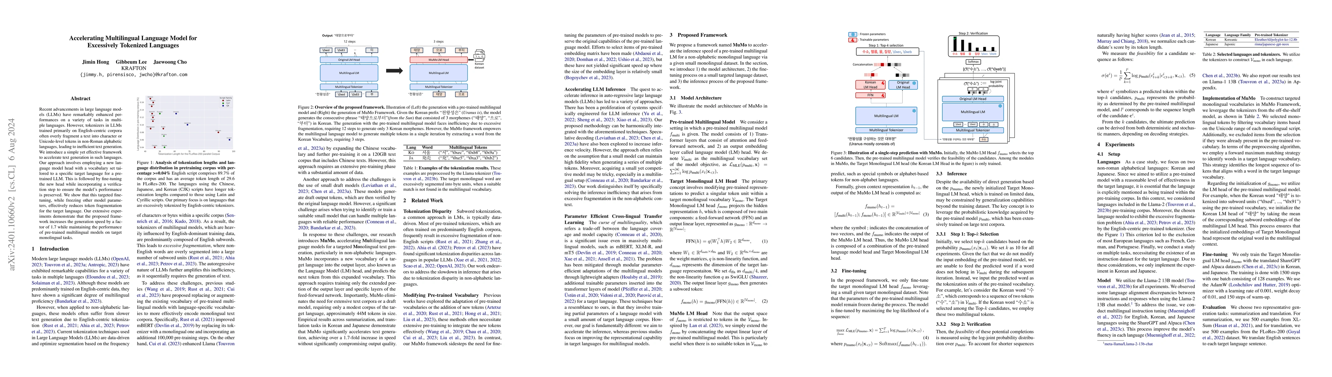 This paper introduces a framework to accelerate multilingual language models for faster monolingual text generation, particularly for non-roman alphabetic languages. The proposed method predicts larger linguistic units, reducing decoding steps and achieving a 1.9x speedup compared to standard decoding while maintaining model performance.