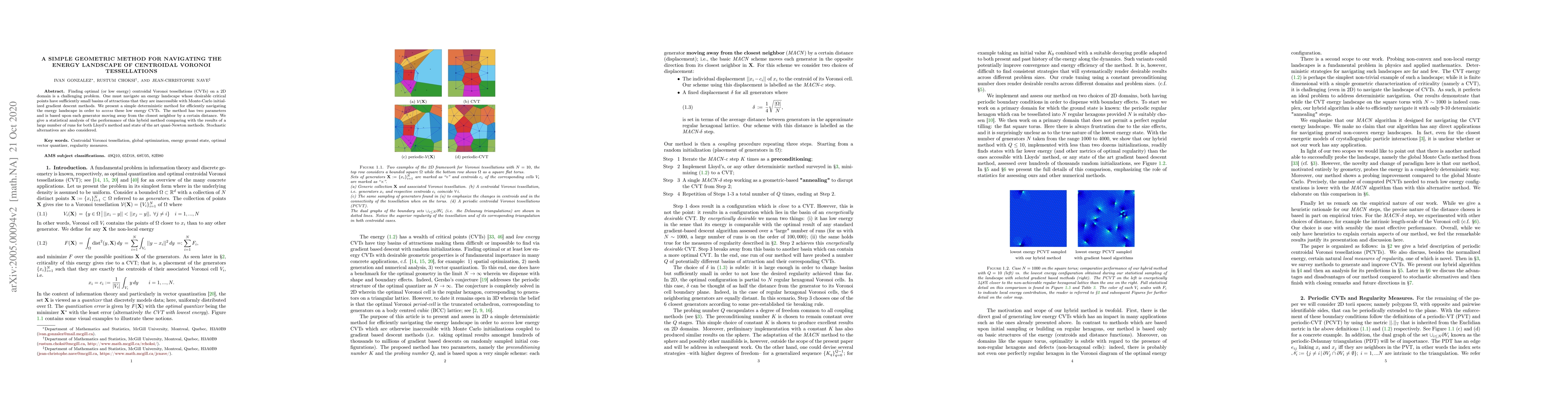 This paper proposes a simple deterministic method for navigating the energy landscape to find optimal centroidal Voronoi tessellations (CVTs) by moving generators away from their closest neighbors. The method is compared against Lloyd's method and quasi-Newton techniques, showing improved efficiency in accessing low-energy CVTs.