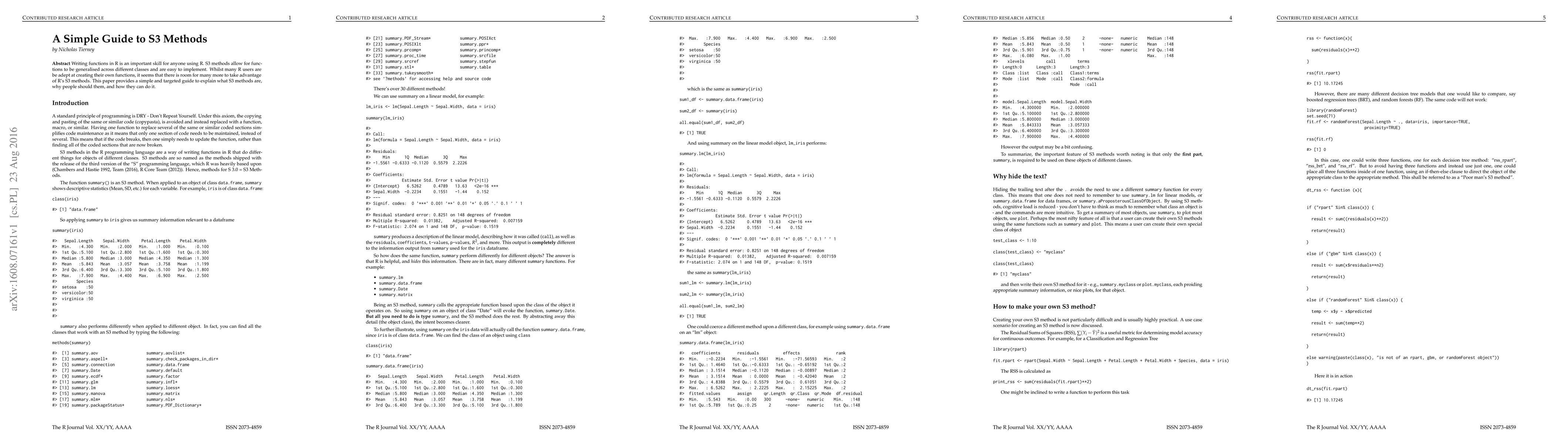 This paper offers a straightforward guide on S3 methods in R, explaining their purpose for generalizing functions across different classes and how to implement them effectively to enhance R programming skills.