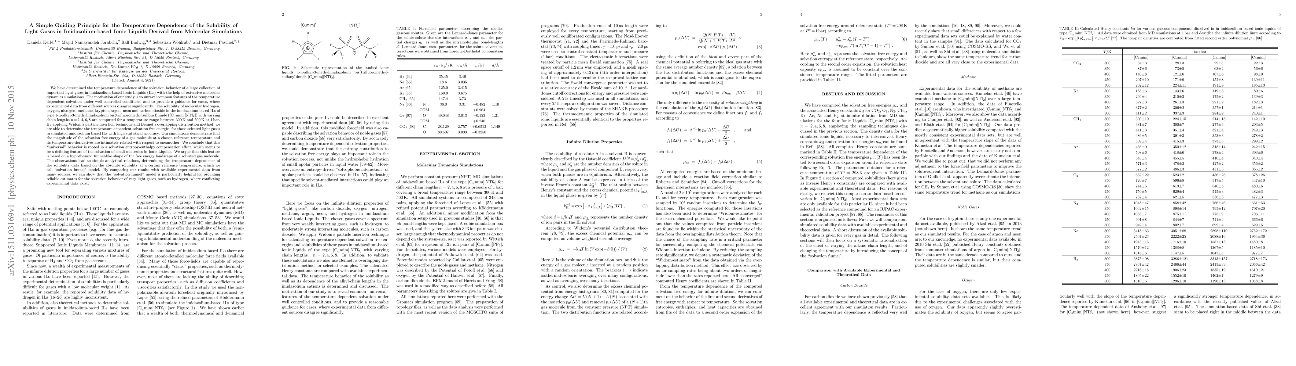 This paper uses molecular simulations to determine the temperature dependence of light gas solubility in imidazolium-based ionic liquids, revealing a "solvation funnel" model based on entropy-enthalpy compensation. The model provides reliable estimates for the solubility of gases like hydrogen, where experimental data is inconsistent.