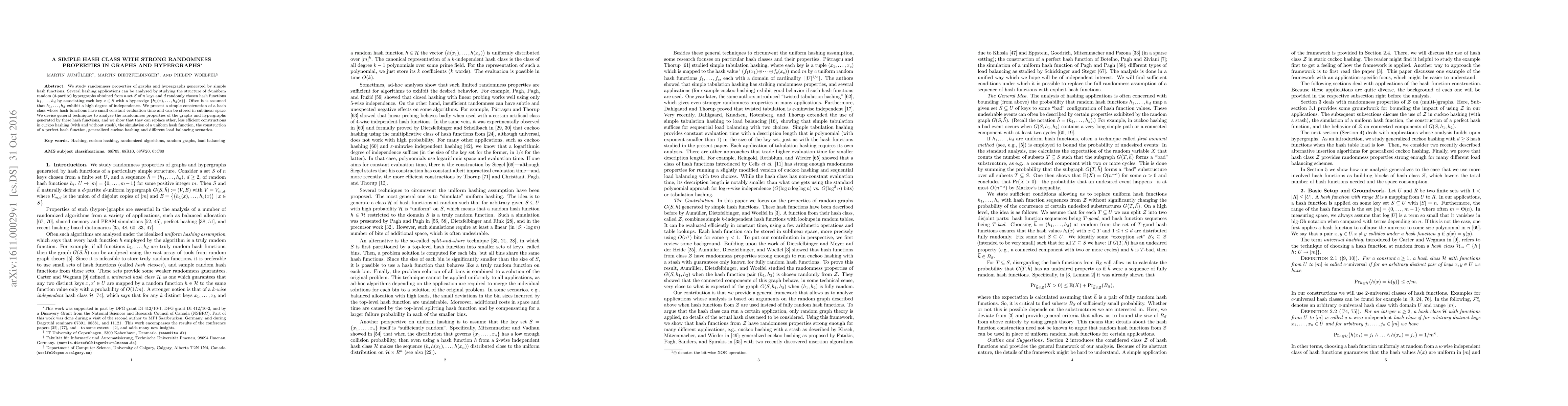 This paper introduces a simple hash class with strong randomness properties for generating $d$-uniform hypergraphs from a set of keys and hash functions, demonstrating its efficiency in cuckoo hashing, perfect hash function construction, and load balancing. The proposed hash functions have small evaluation time and sublinear space requirements.
